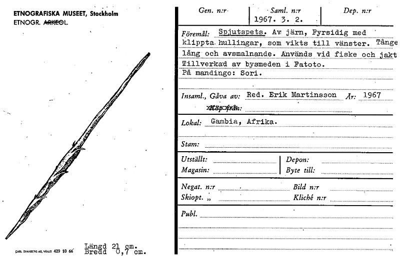 • Katalogkort från Etnografiska museets arkiv.