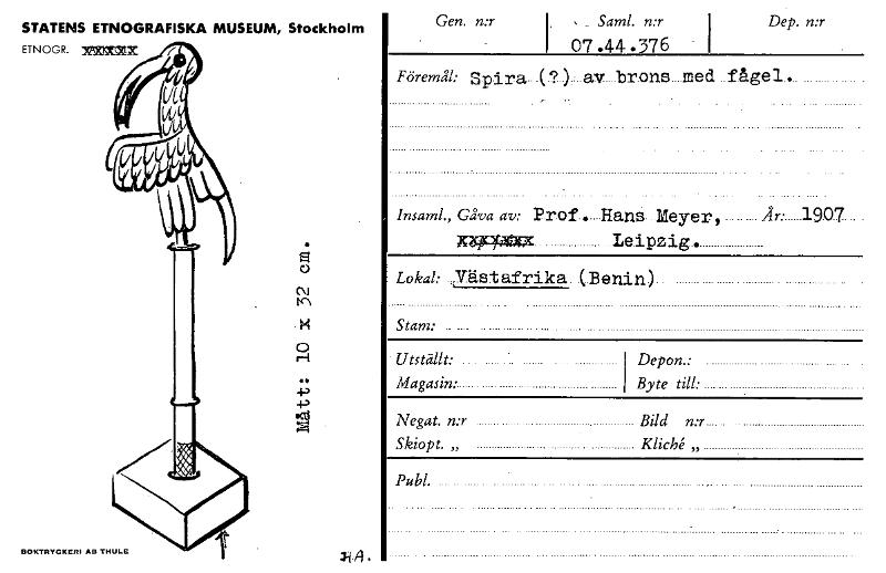 • Katalogkort från Etnografiska museets arkiv.