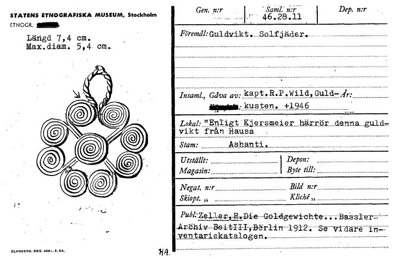 • STATENS ETNOGRAFISKA MUSEUM, Stockholm ETNOGR. 01.111. Längd 7, 4 cm. Max. diam. 5,4 cm. ELANDERS. GBG. 4561. 3. 54. Gen. n:r - - - - . ' Sanit n:r . i 46.-28-.11 Dep. n:r Föremål.- GuLdv.ikt......So1... Visa hela