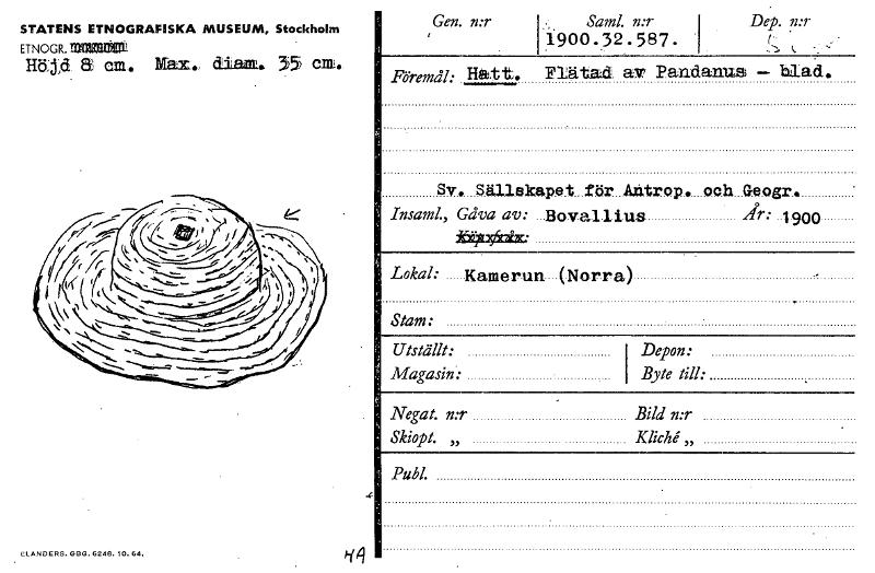 • Katalogkort från Etnografiska museets arkiv.