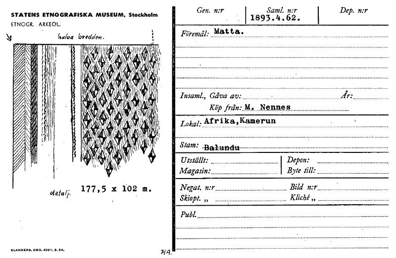 • Katalogkort från Etnografiska museets arkiv.