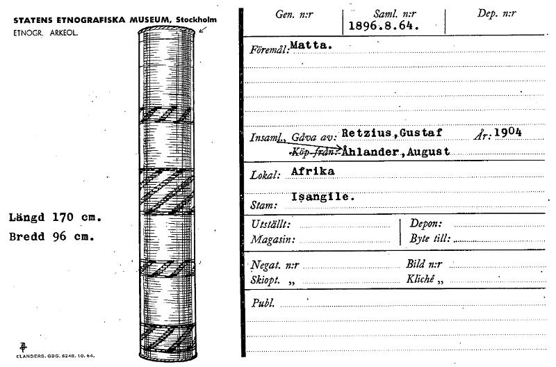 • Katalogkort från Etnografiska museets arkiv.
