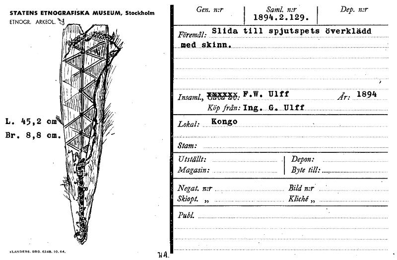 • Katalogkort från Etnografiska museets arkiv.