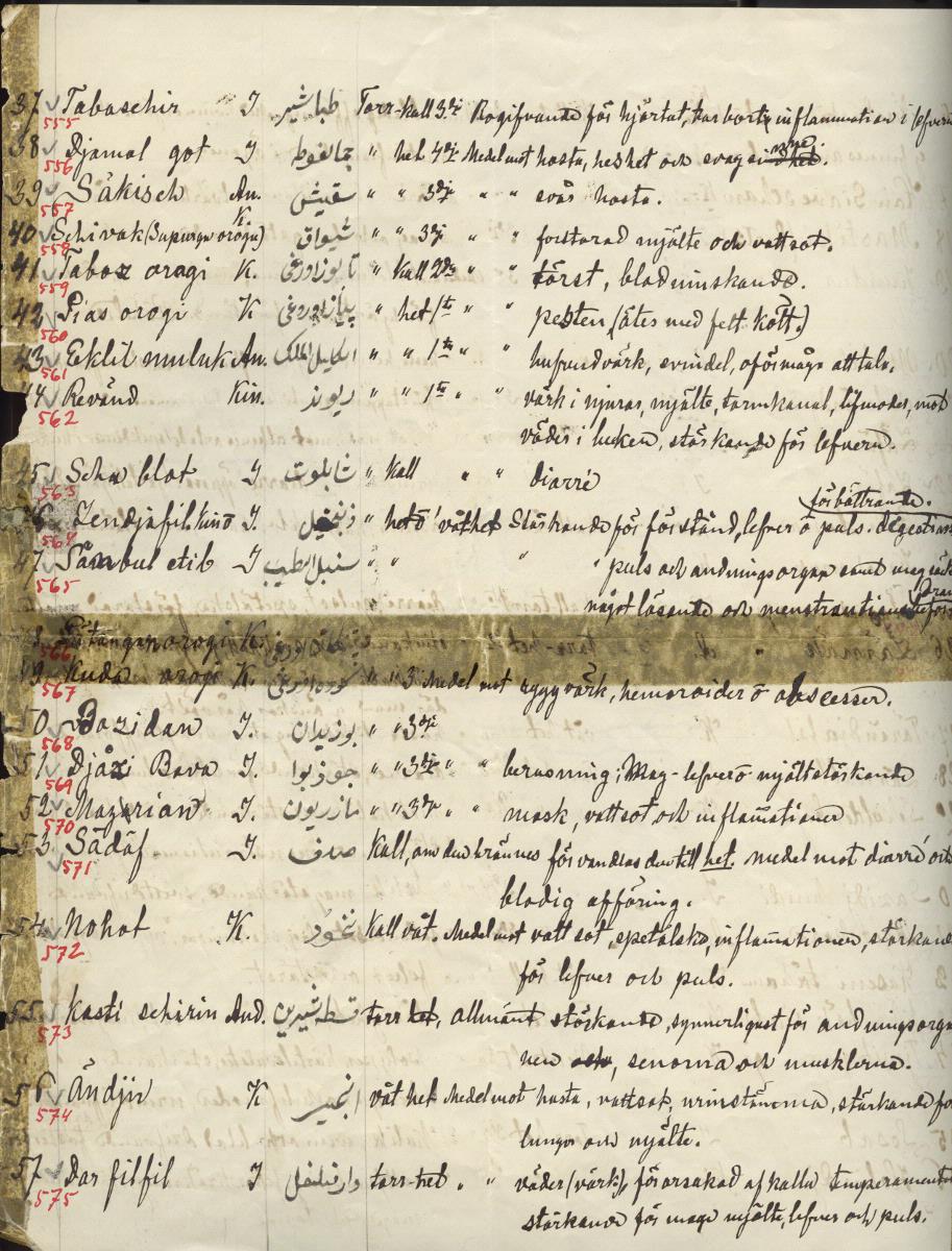 • Sida ur Högbergs egen förteckning och dokumentation över samling 1907.57.