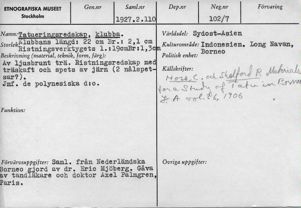 Källa <presOrganization> Statens museer för världskultur - Etnografiska museet