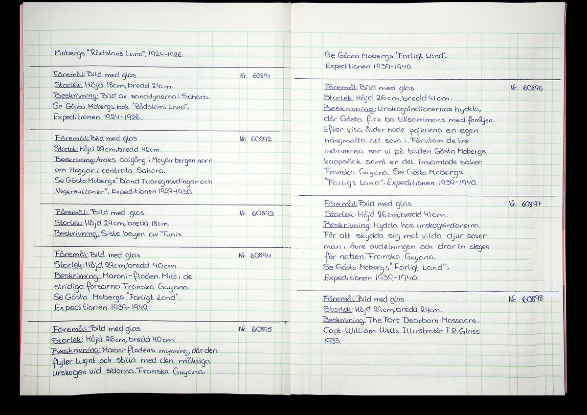 • Sida ur handskriven förteckning över föremål från Smålands museum, deposition in-1994.0001, samling 1994.20.