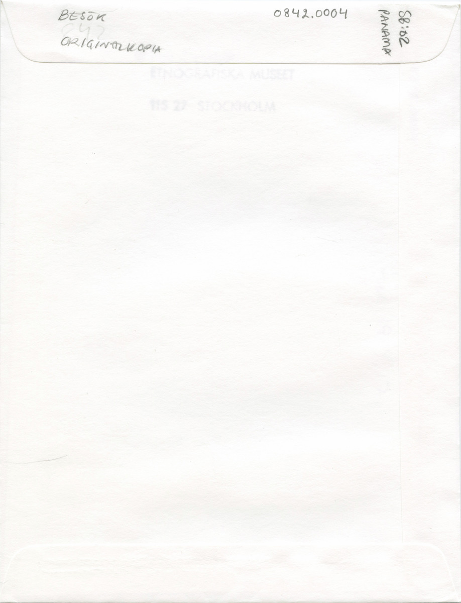 • Kuvert innehållande svartvitt fotografi, ur Etnografiska museets arkiv.