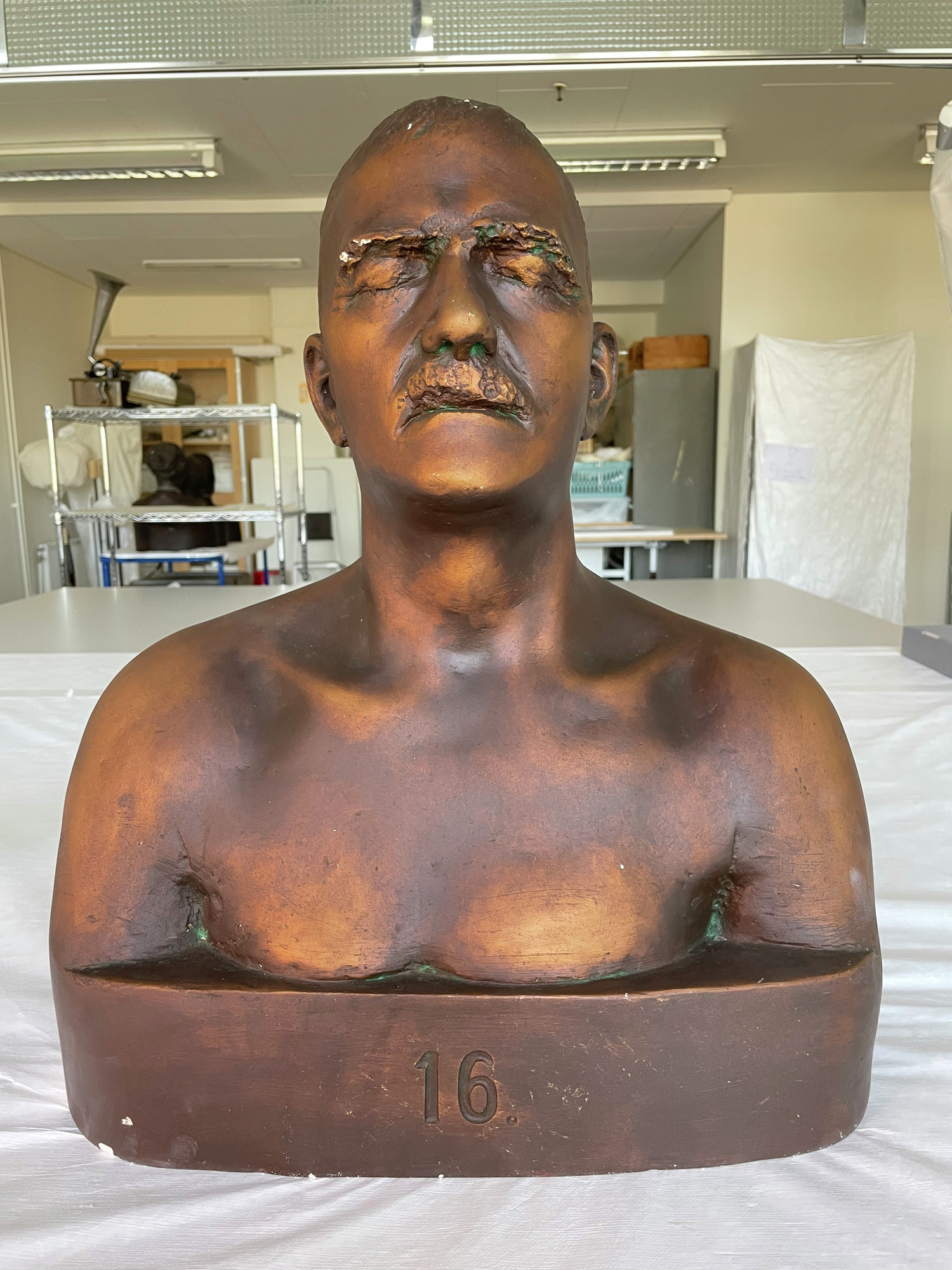 ETNOGRAFISKA MUSEET Djurgårdsbrunnsvägen 34 115 27 Stockholm Phone: +46 10 456 12 00, Fax: +46 10 456 12 97 infoldskulturmuseerna.se www.varldskulturmuseerna.se Org. Nr: 202100-5075 CONDITION STATEMENT FOR LOAN/EXHIBITION LOAN/EXHIBITION TITLE OR NUMBER: Kappsäcken: Skelettsamlaren OBJECT NUMBER: 2016.03.0012 OBJECT DETAILS OBJECT TYPE: Huvud, byst NUMBER OF PARTS: 1 MATERIALS: Gypsum, paint DIMEN...Visa hela