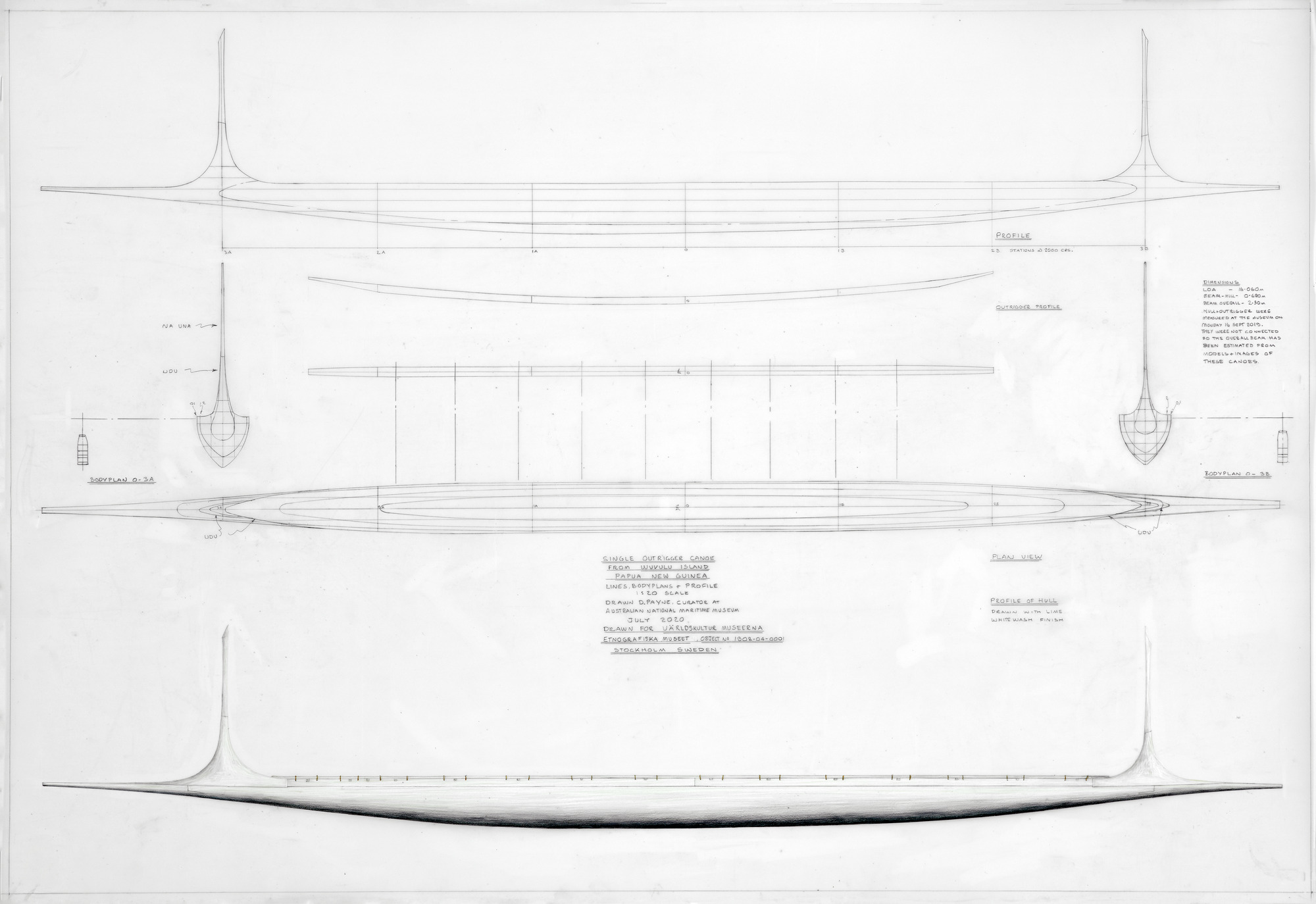 Ritning av Wuvulukanoten utförd av David Payne. Ritningen visades i anslutning till kanoten när den var utställd i Gallerigången. Sannolikt fick vi endast digitala filer av ritningen.