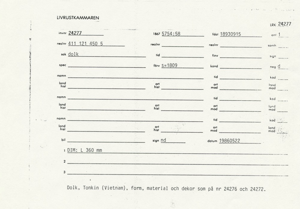 | Källa <presOrganization> | Statens museer för världskultur - Etnografiska museet |