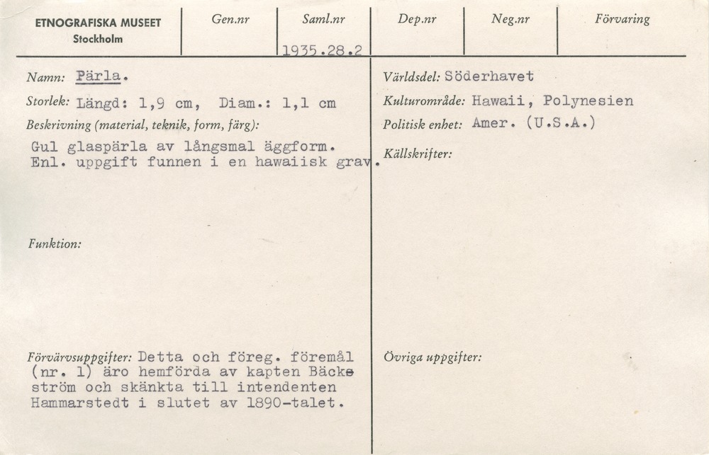 | Källa <presOrganization> | Statens museer för världskultur - Etnografiska museet |