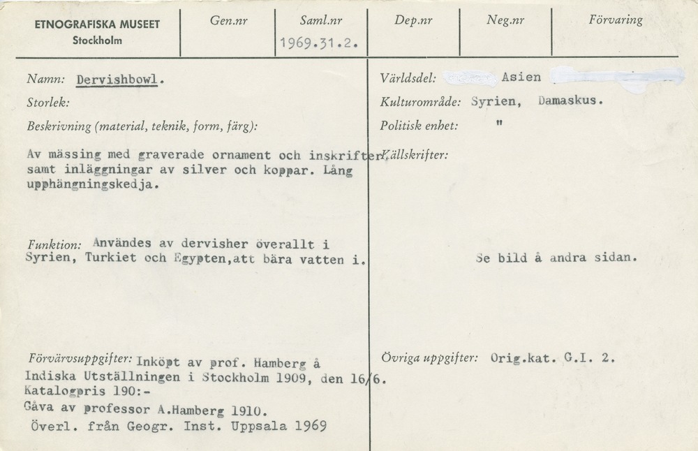 Källa <presOrganization> Statens museer för världskultur - Etnografiska museet