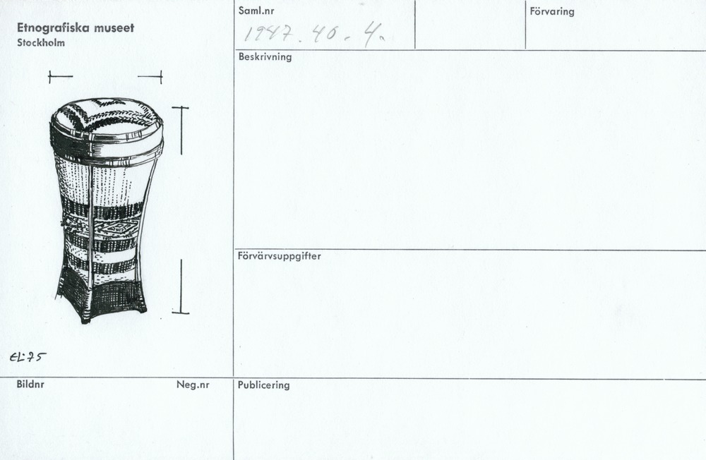 • Katalogkort ur Etnografiska museets arkiv.