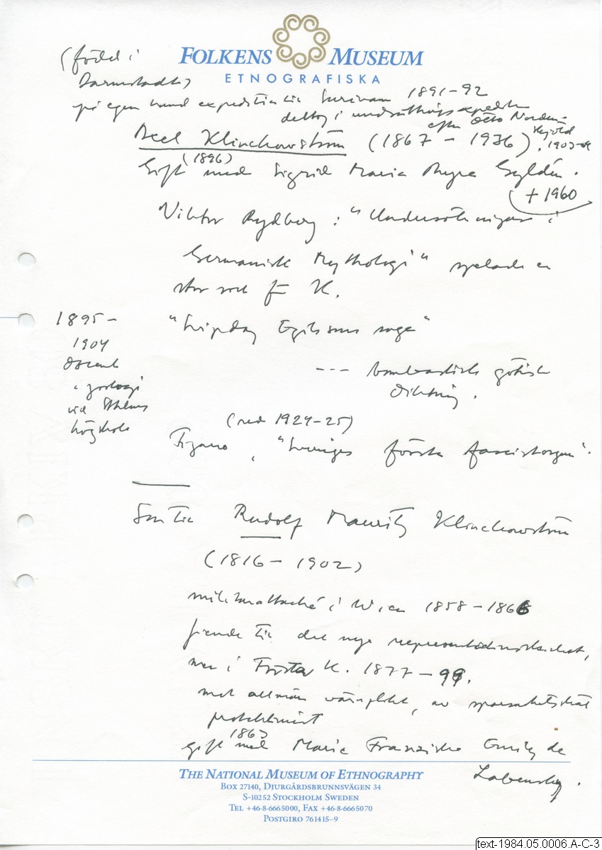 Källa <presOrganization> Statens museer för världskultur - Etnografiska museet