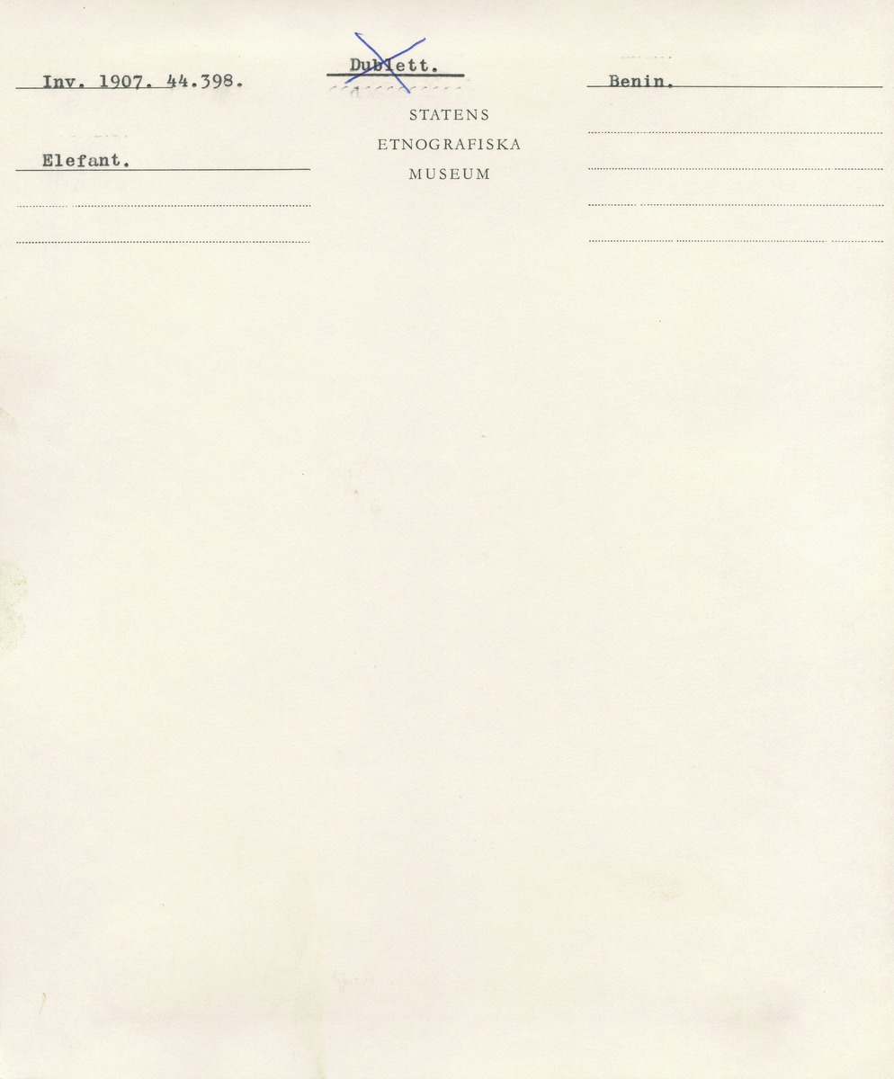 • Katalogkort ur Etnografiska museets arkiv.