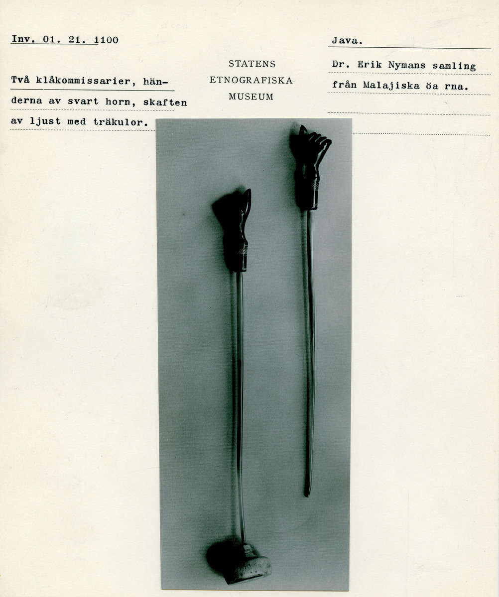 • Katalogkort ur Etnografiska museets arkiv.