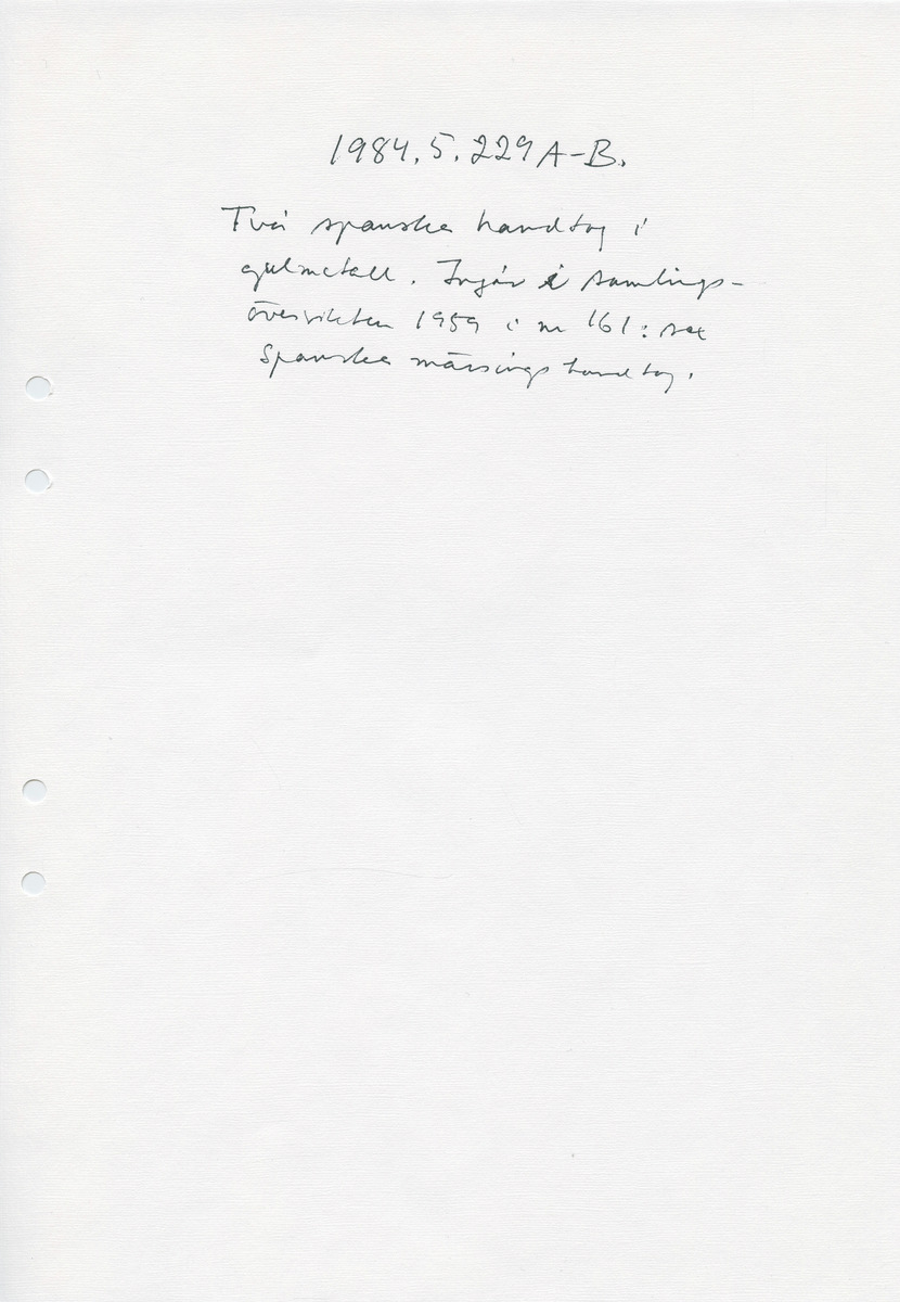 • Sida ur pärm för samlingen Travellers Club, 1984.05.