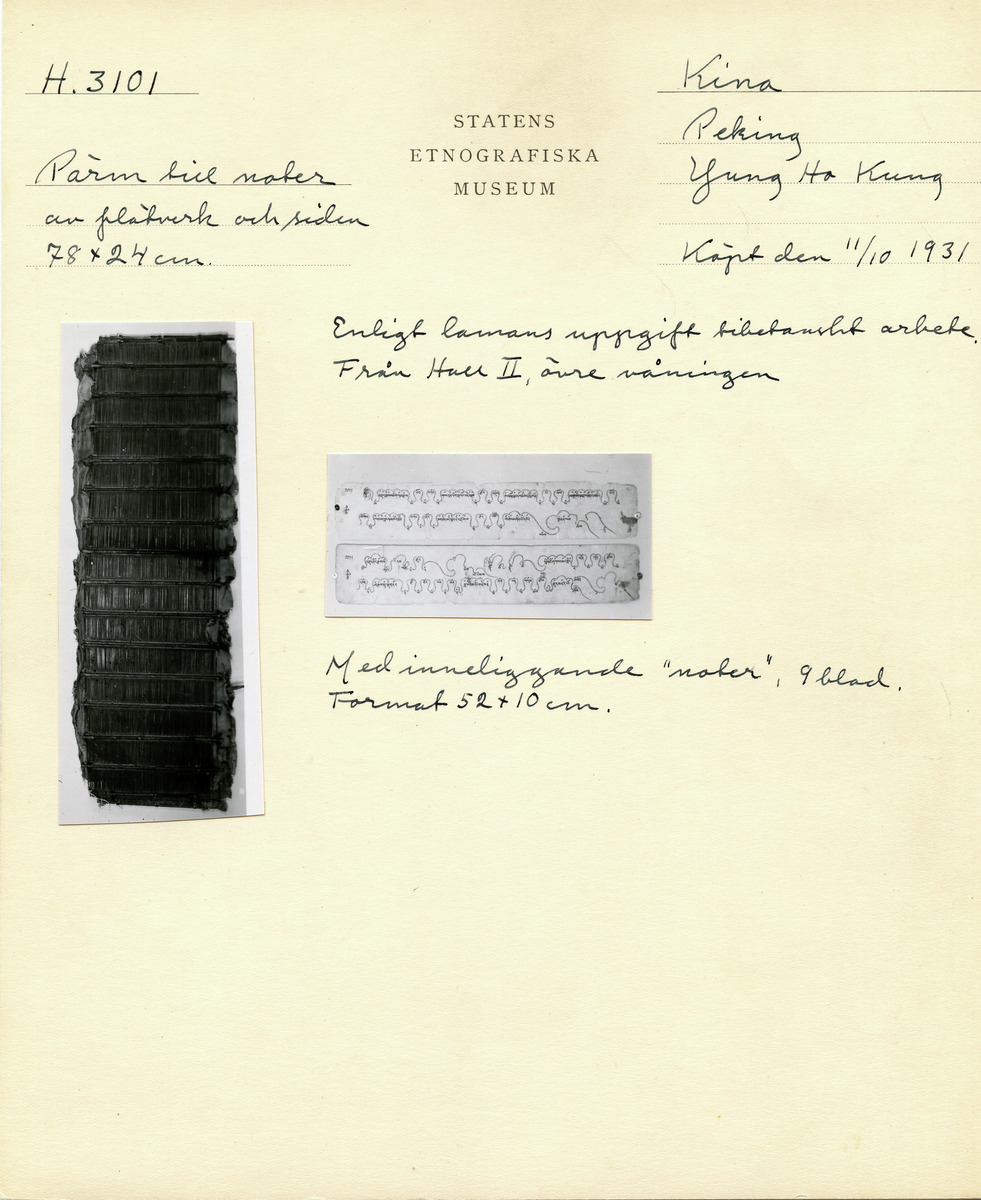 • Katalogkort ur Etnografiska museets arkiv.