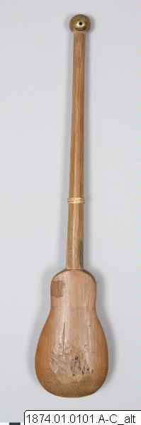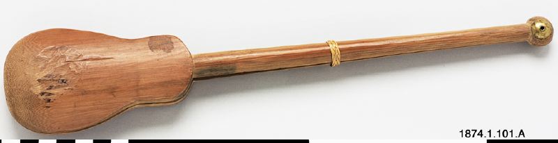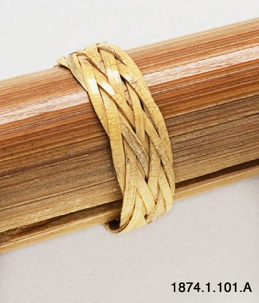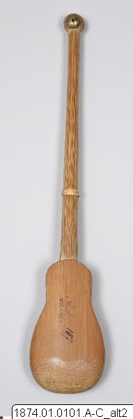 • Fodral till våg. Fiolformat fodral av bambu, i två delar men sammanfogade med metall. Ett "lås" av flatad bambu. (AU)