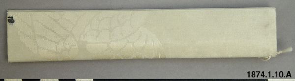 • Fodral av papper, klätt med vitt mönstrat siden.