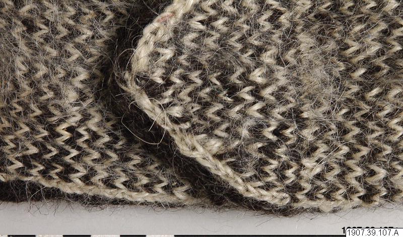 Strumpsockor. "Gårah". Ett par, förfärdigade av getull för hand. (generakatalogen) Tillhör kurdisk gossdräkt.