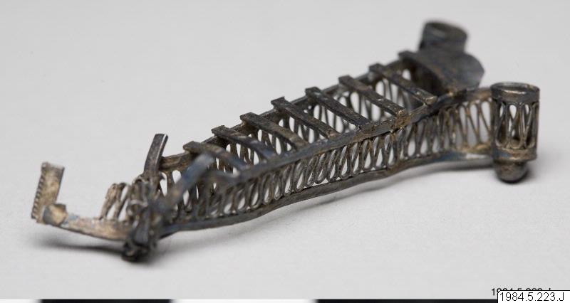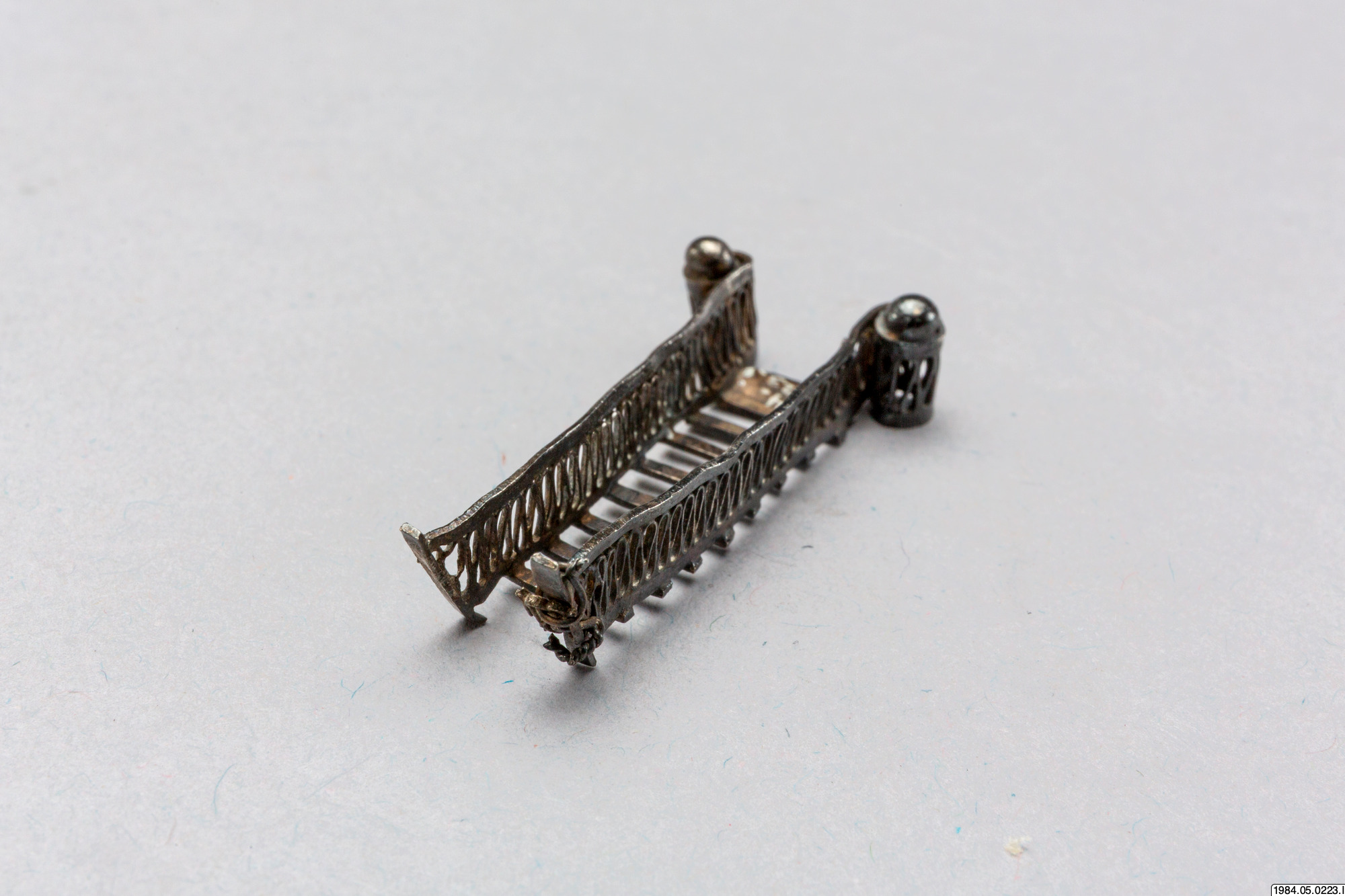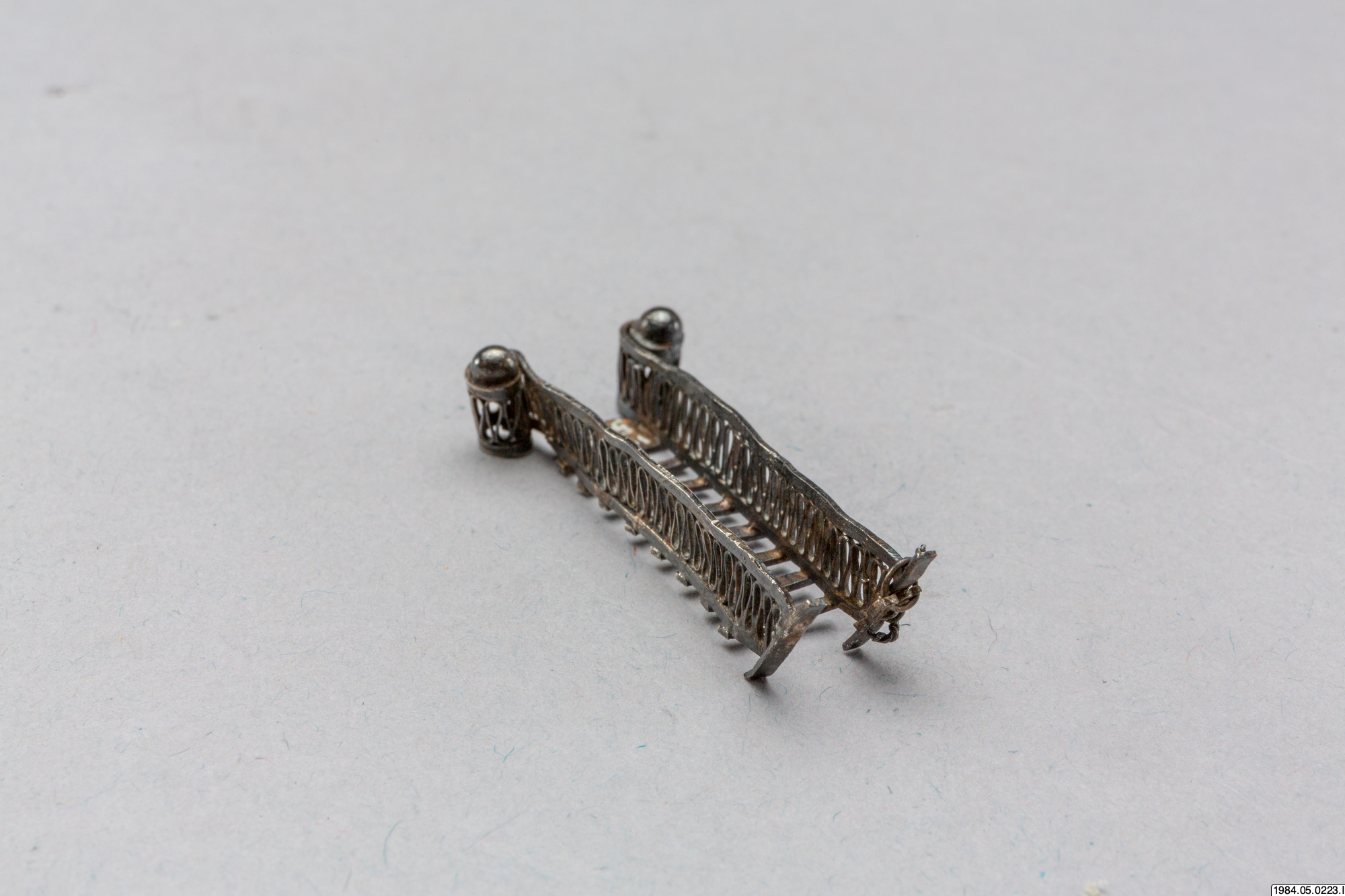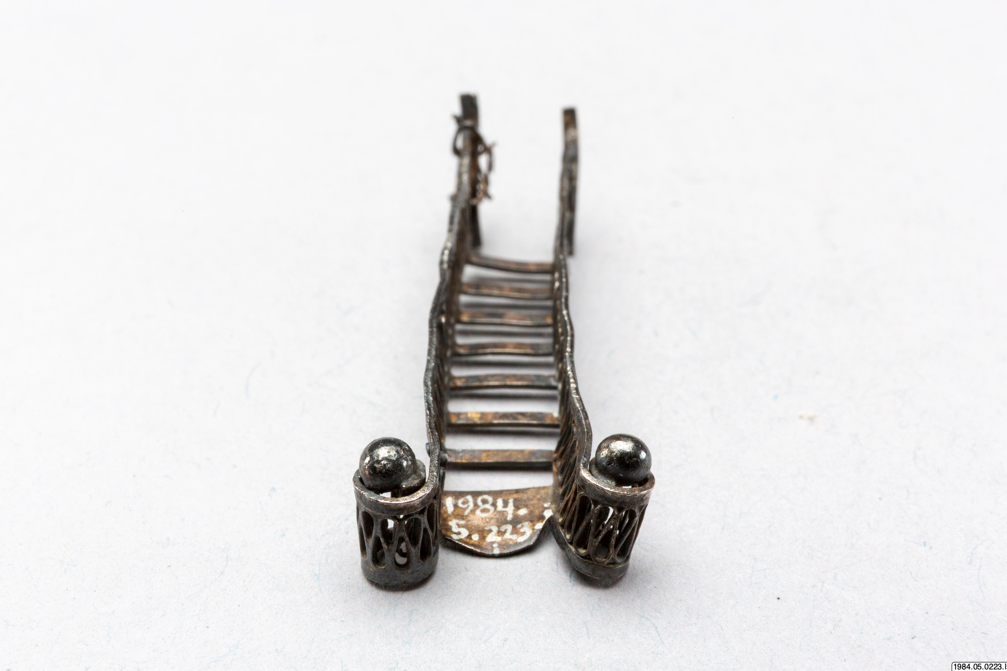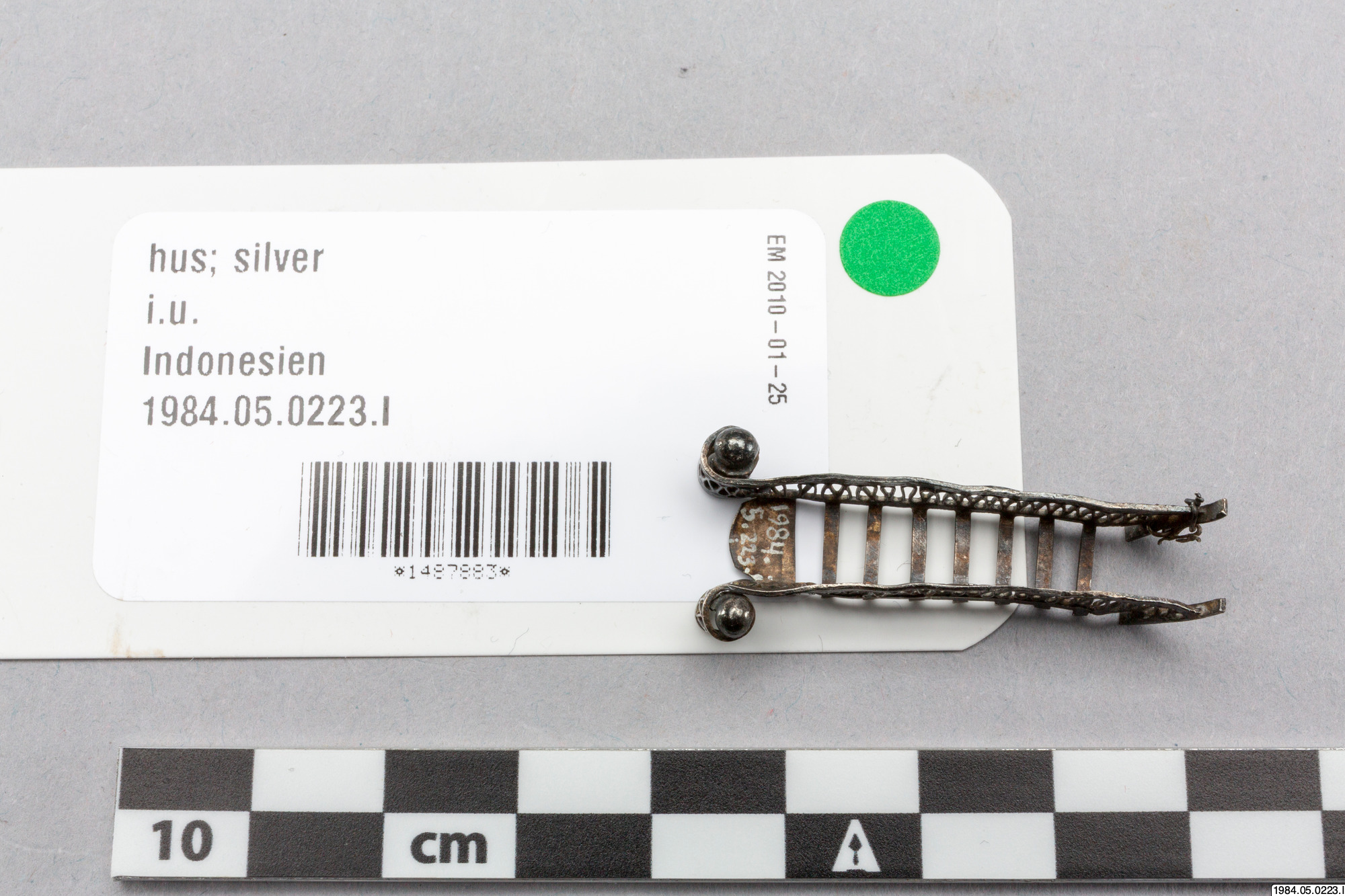 • Modell av ett minangkabauhus på Sumatra. Detalj till hus. Filigranarbete.