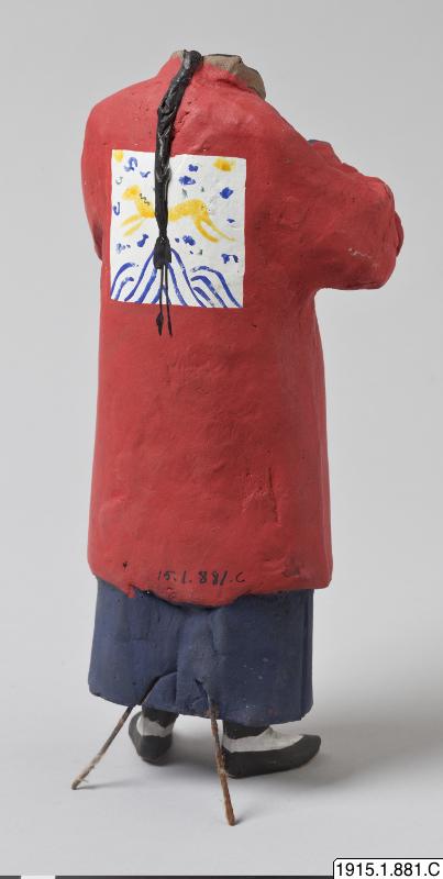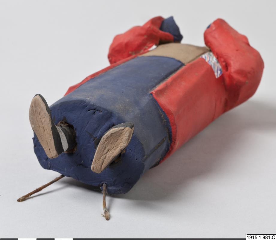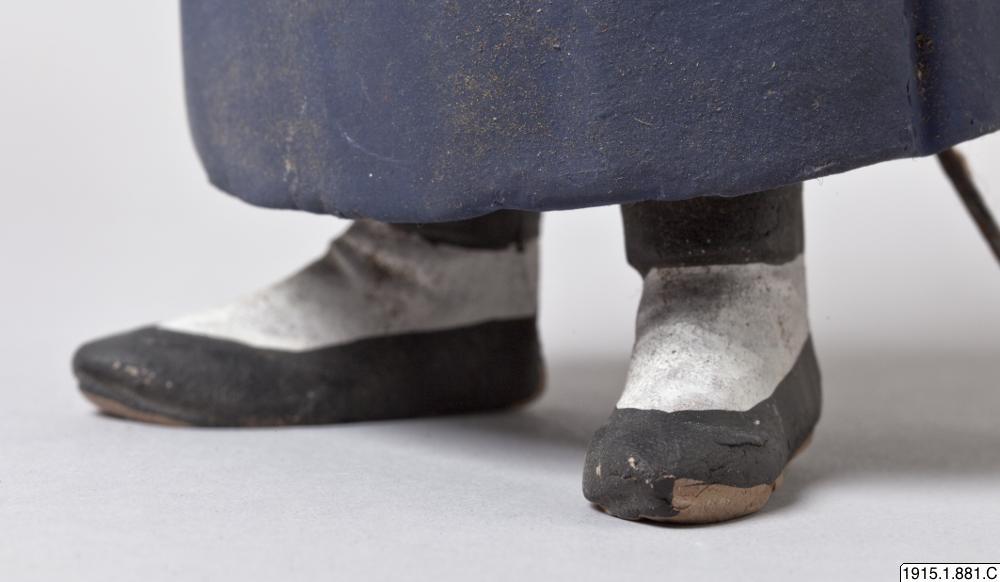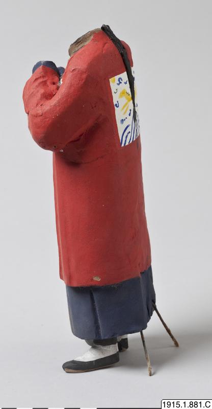 • Figur av lera; kroppen. Figuren föreställer en trumpetblåsare klädd i röd jacka, som blåser i en kort trumpet med svart skaft med hål.