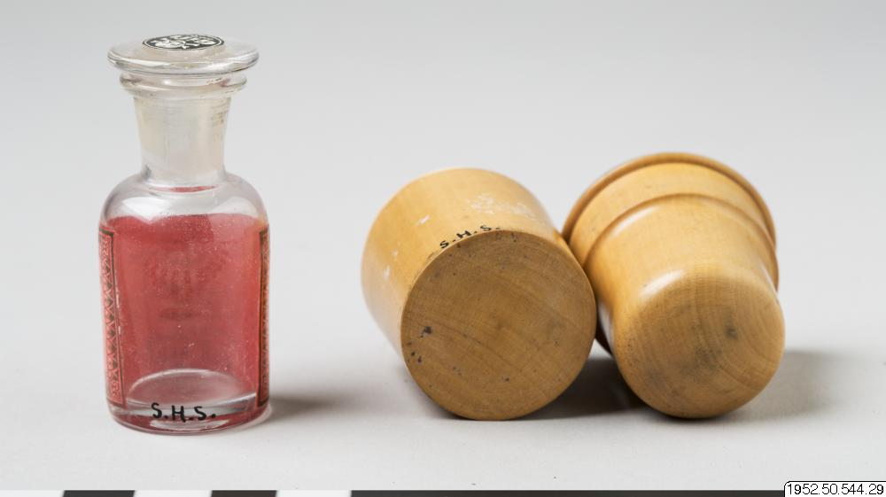 Ordinerat av Doktor Nordenson. Exp av Lundberg. 18/6 1899.Ligger i fack nr 10 . Tillhör Sven Hedins reseapotek från 1899.