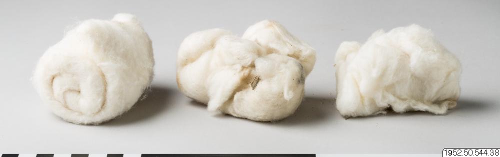 Bomull/vadd i rulle, med 3 st bomullstussar Ligger i fack nr 12 . Tillhör Sven Hedins reseapotek från 1899