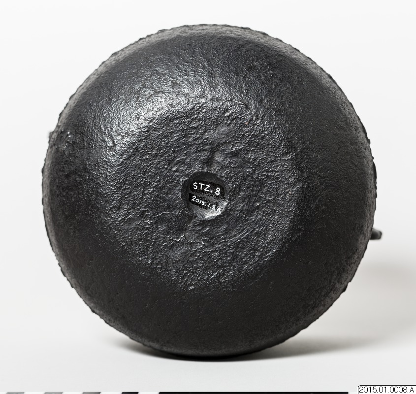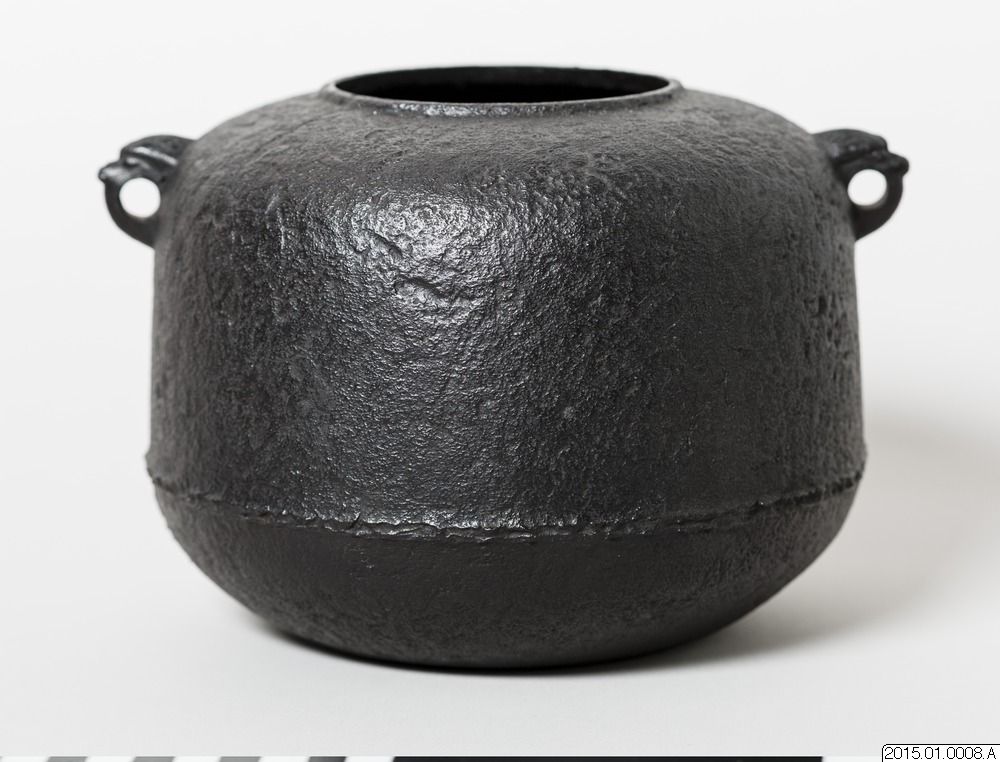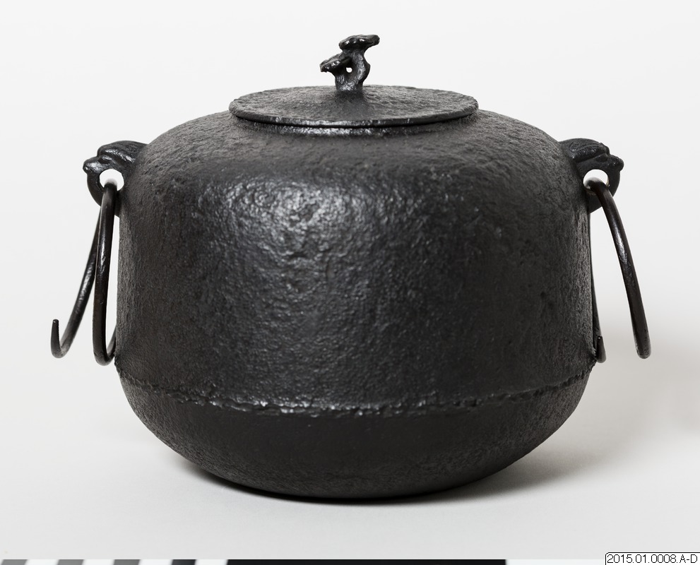 • Tekittel av järn, på sidorna två handtagsöglor utformade som ett stiliserat djur. En stämpel i relief på ena sidan (i nederkant).