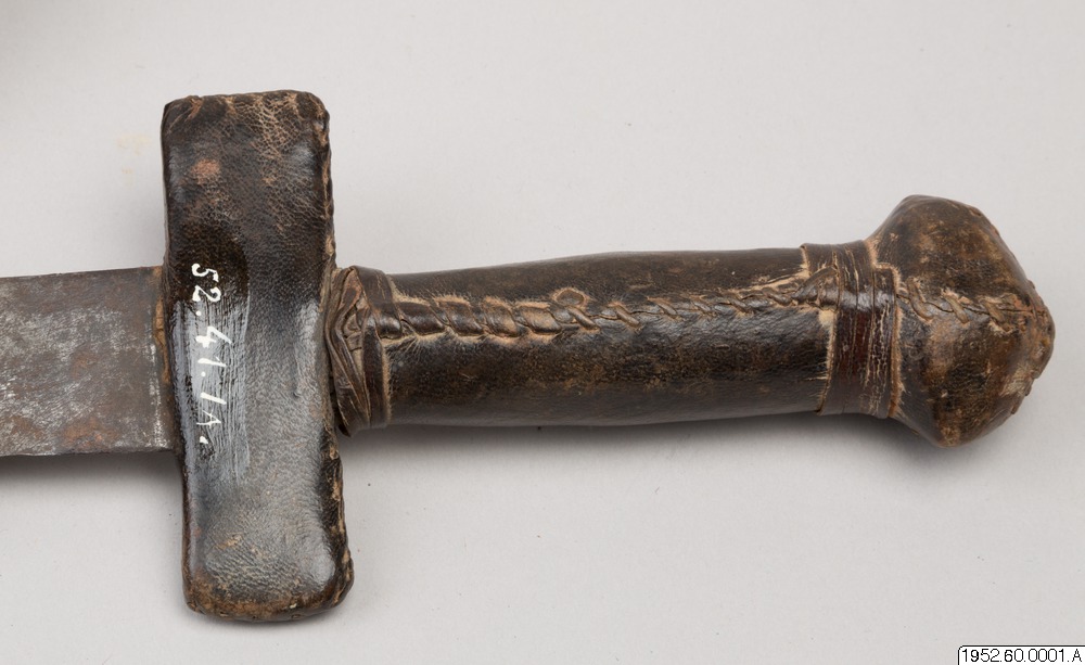 • Svärd med läderklätt skaft.