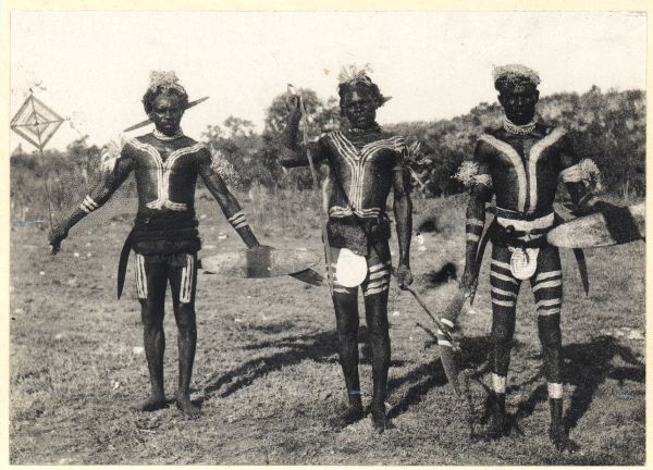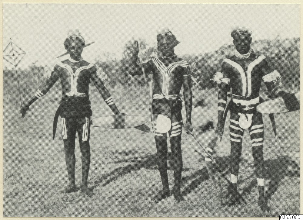 dansattribut, män, boomerang, sköldar, drake, kroppsmålningar, fotografi, photograph