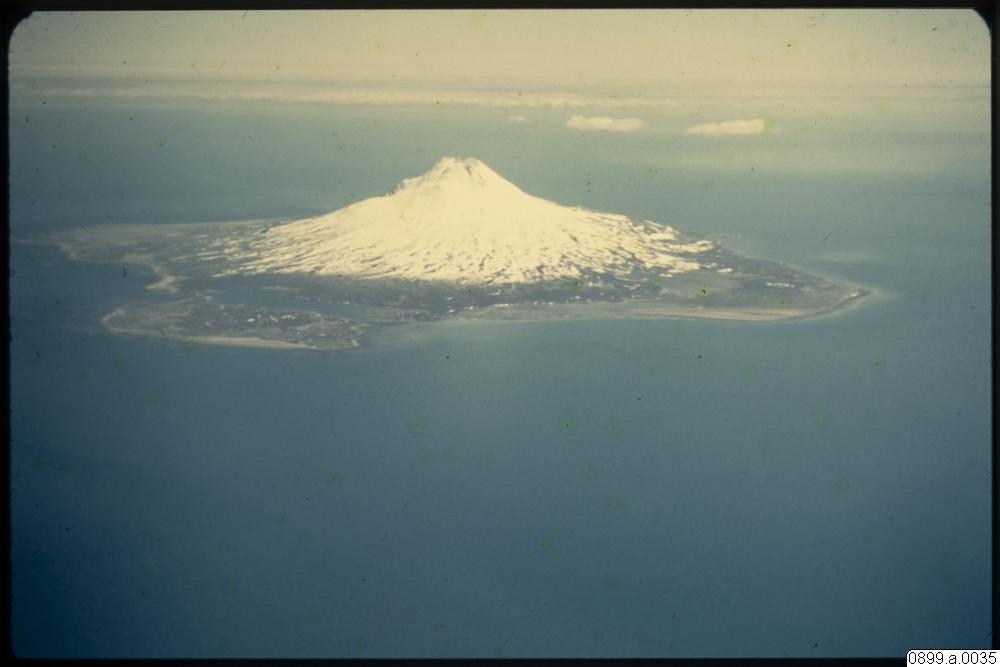 • En ö som ser ut som en vulkan. Augustine Island, Koo (?) Island.