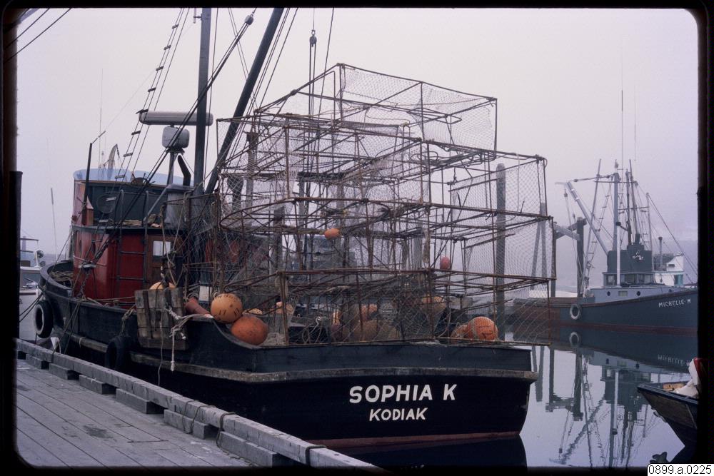Sophia K Kodiak. (Fiske?)båt med nätkorgar i hamnen.