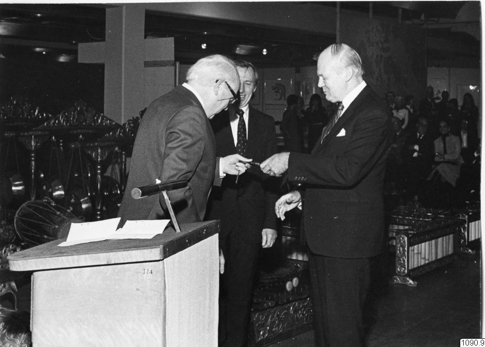 • Invigningen 18 november 1980, Etnografiska museet. Byggnadssyrelsen överlämnar "nyckeln" till museet