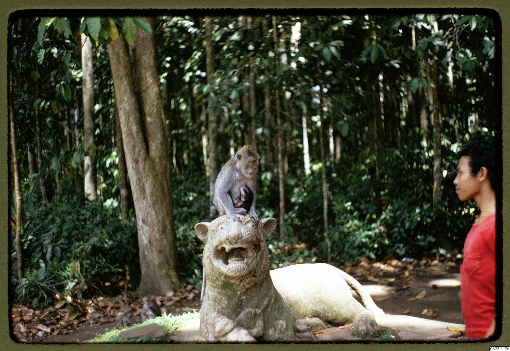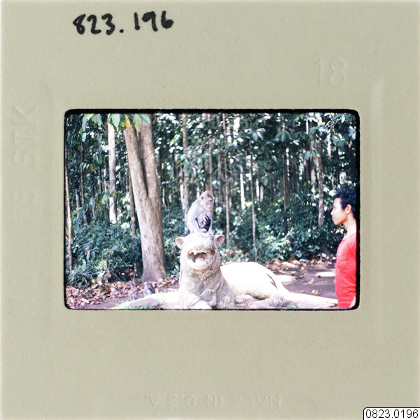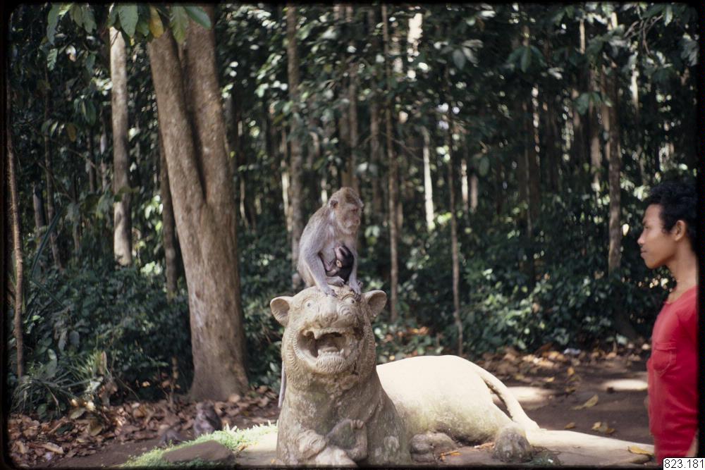 • Asien syd 823 11 - Liten apa (krabbmakak?) på staty