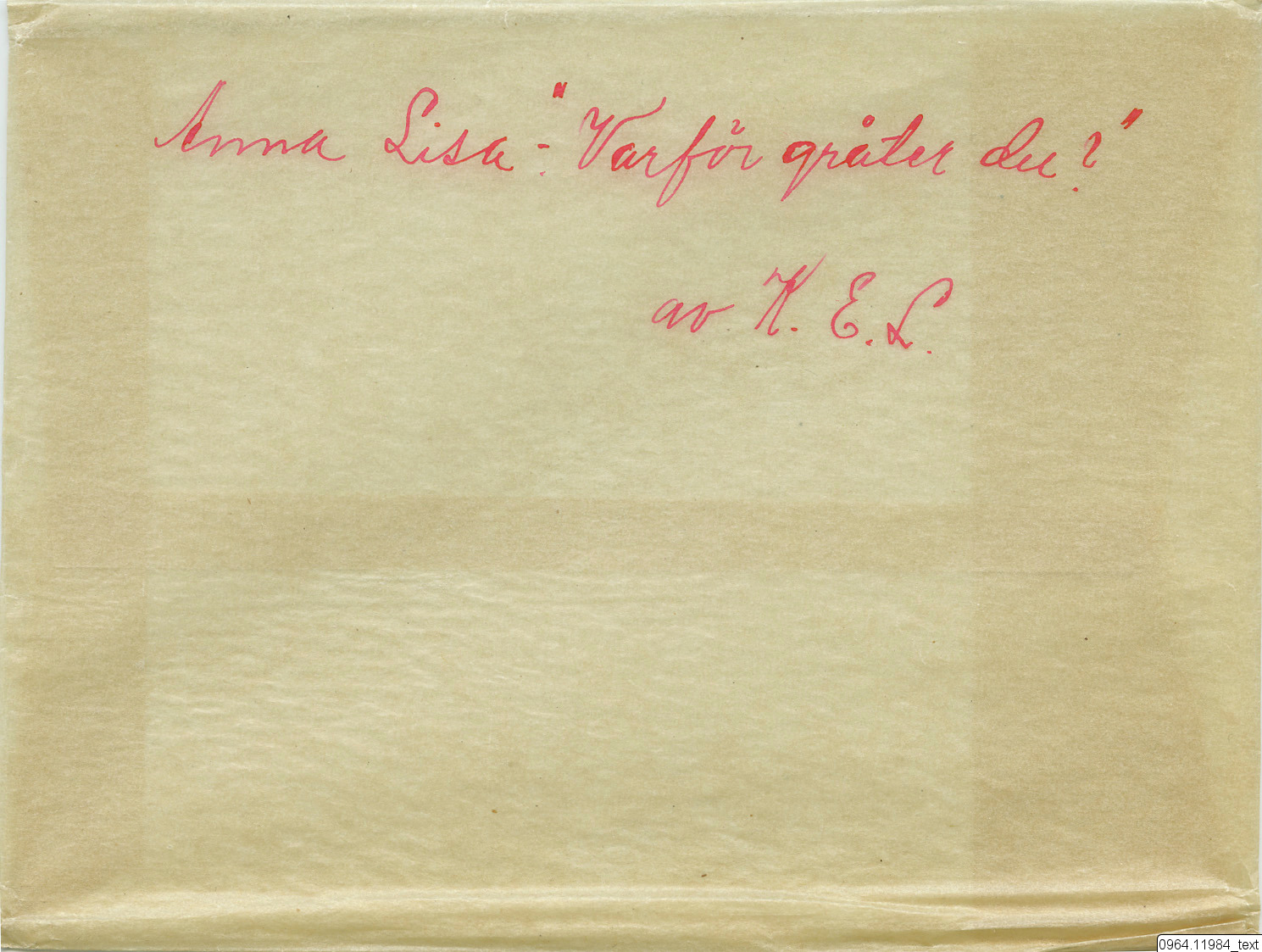 • Kingoyi. Anna Lisa Walder. 1910. K.EL. På ett kuvert står "Varför gråter du".