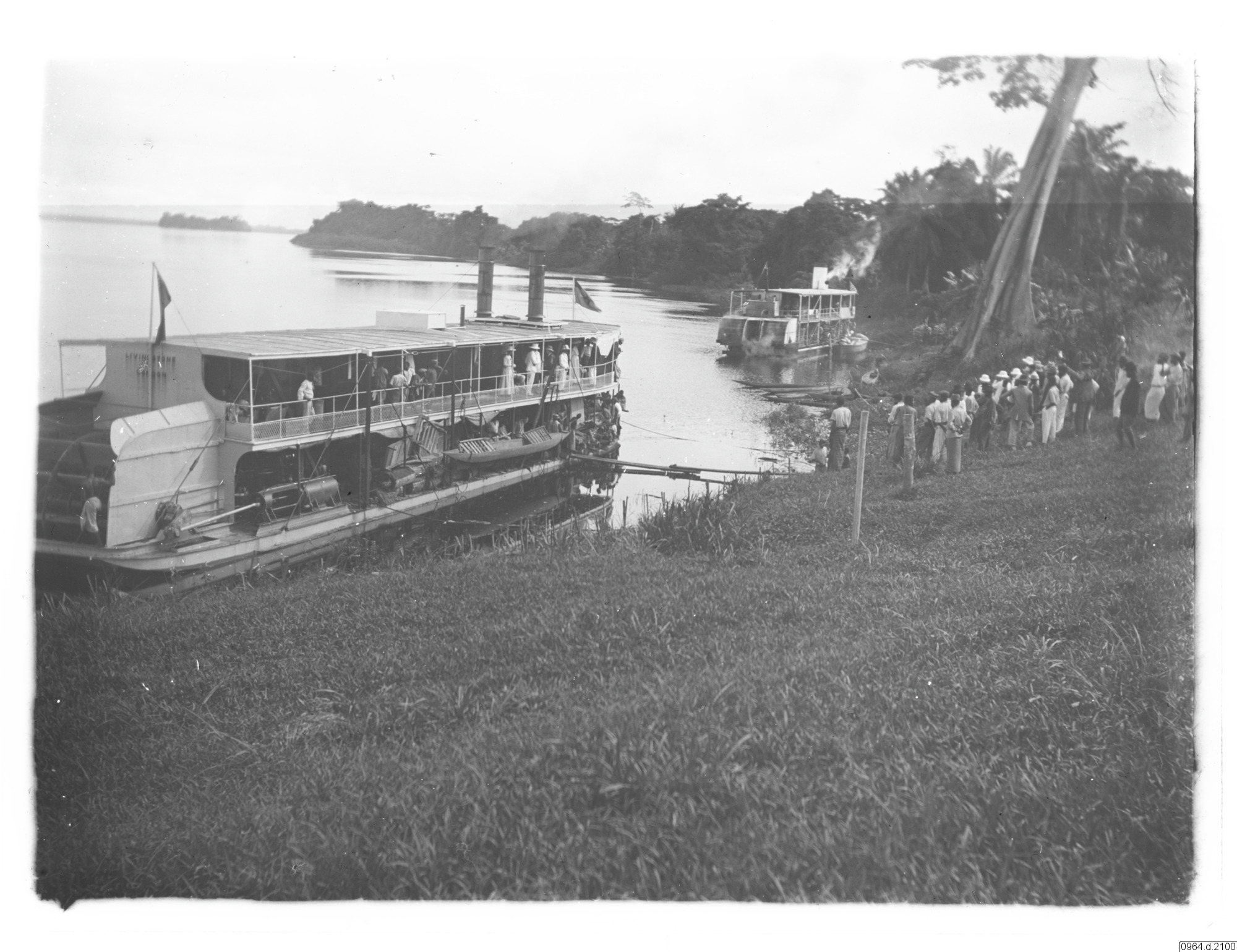 personer, träd, vatten, folksamling, strand, båt, ångbåt, flod, fotografi, photograph