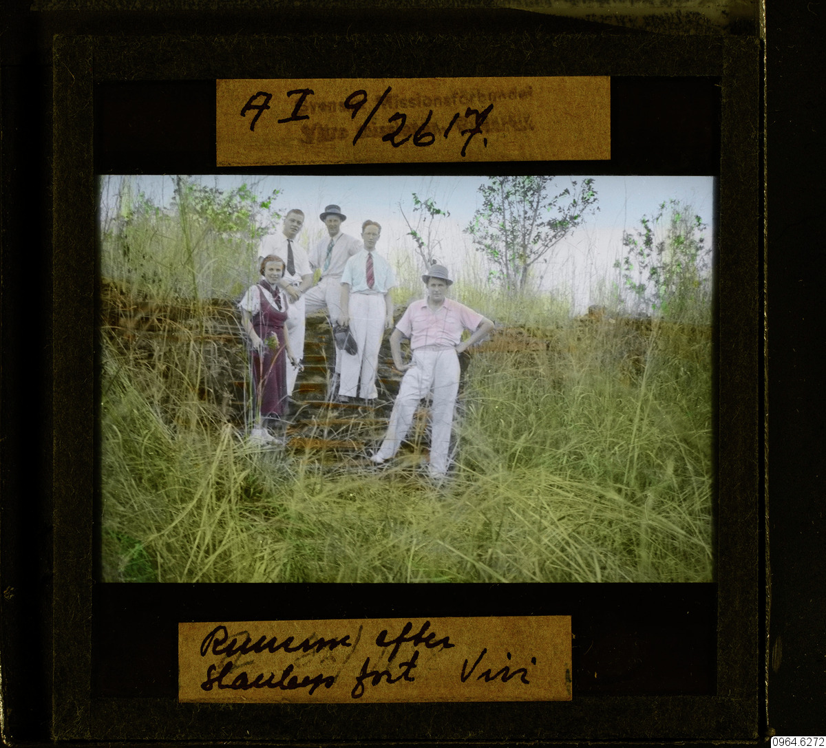 Ruiner från Henry Morton Stanleys fort, Viiv. I mitten med glasögon och blå slips Söderberg Bertil.1941. ML.