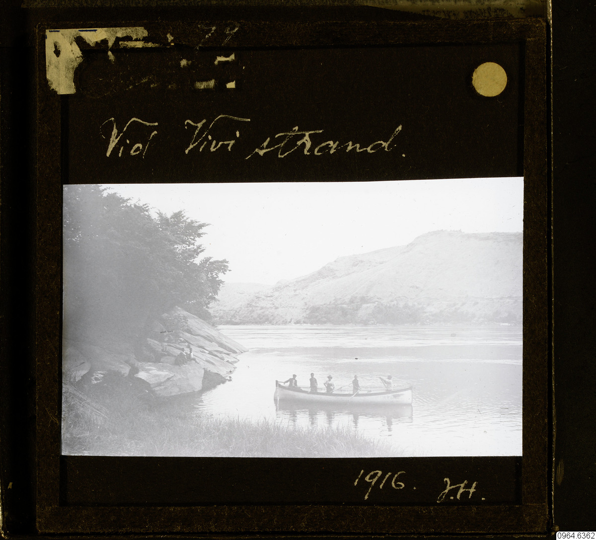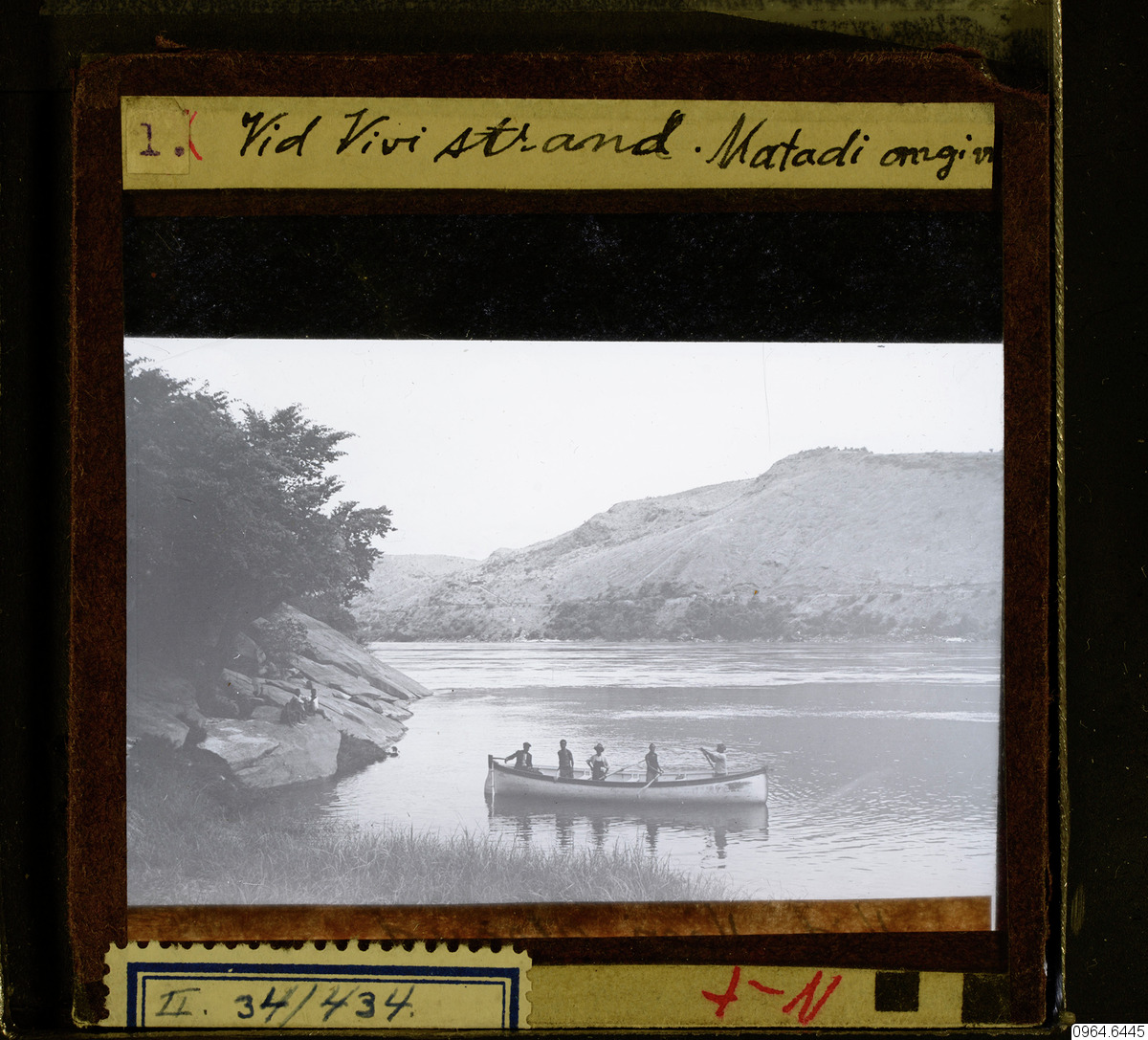 Londe båt vid Vivi strand. 1914. Londe, från 1926 Matadi, ligger 5 kilometer söder om Vivi, på den södra sidan av Kongofloden. J.H.