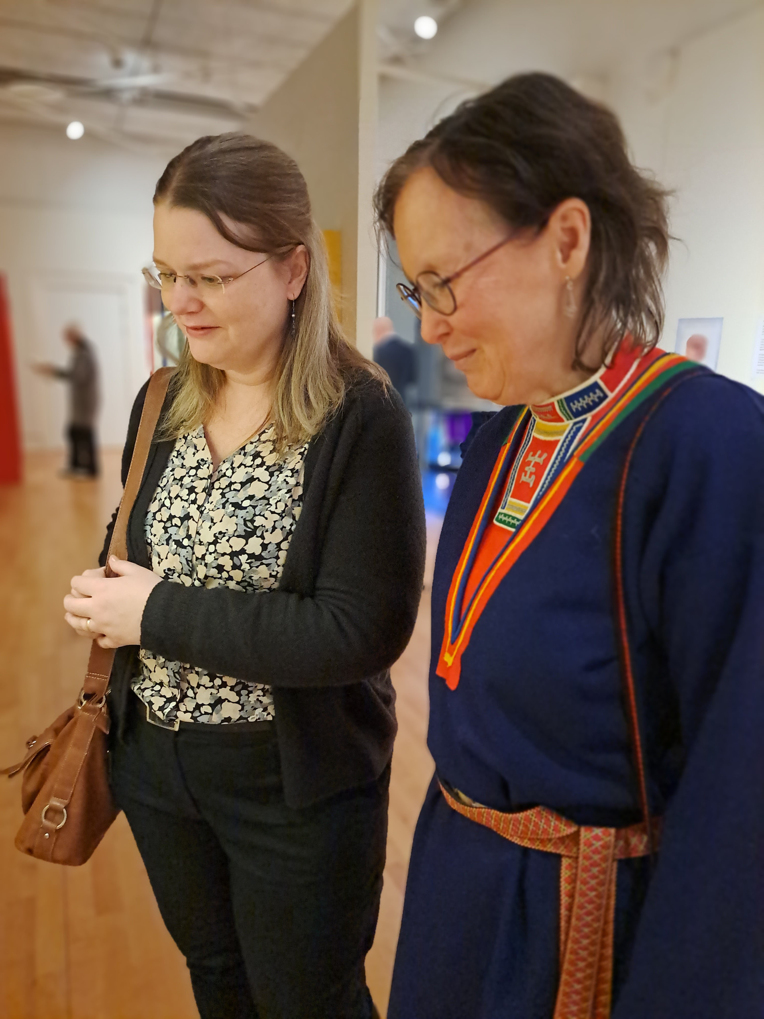 Maria Dahlström, intendent SMVK, och [dolt namn], etnolog Ájtte, i utställningen Mijá Árbbe / Vårt arv – samiska föremål insamlade av Etnografiska museet. I utställningen visas ett urval av föremål som insamlats av Etnografiska museet åren 1834-1937. Sedan 1989 har de varit deponerade på Ájtte. Med utställningen högtidlighåller vi att Ájtte nu övertar äganderätten till dem. I hela samlingen finns ...