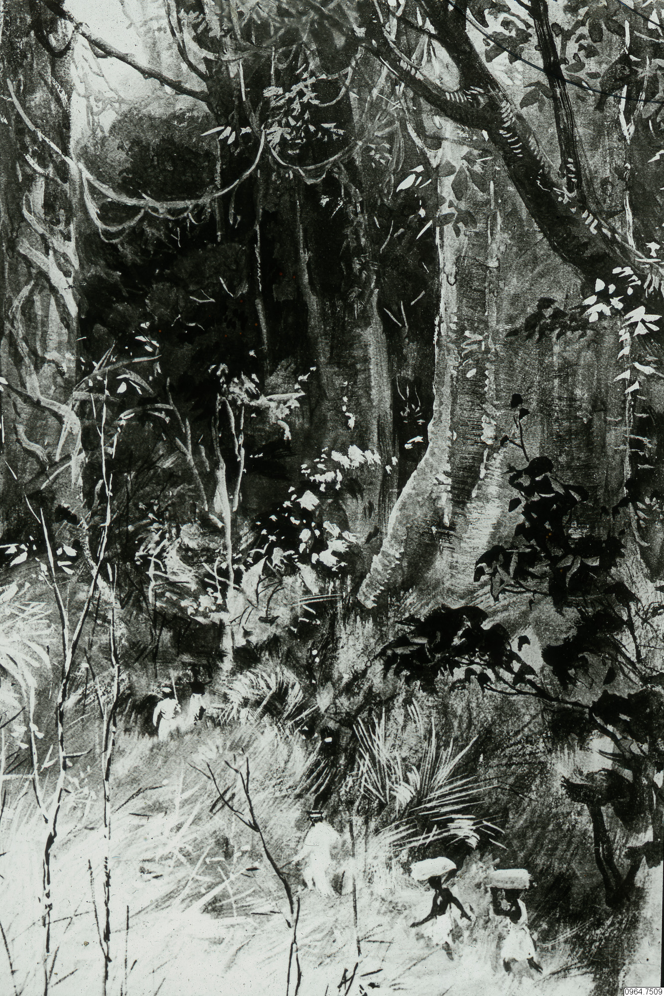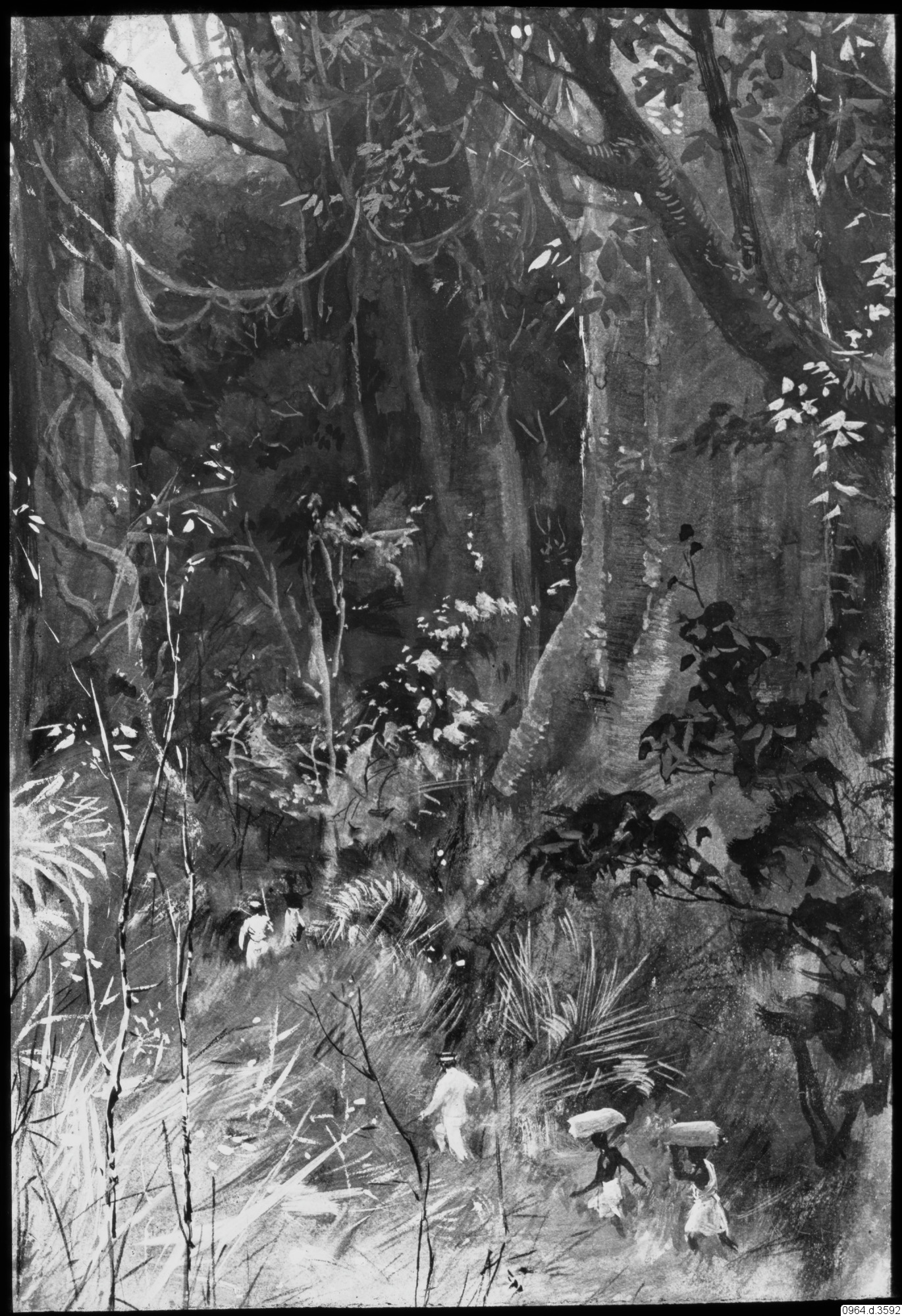 uppräcksresande, träd, skog, missionär, djungel, urskog, karavan, bärare, upptäcktsresande, teckning, Teckning, drawing