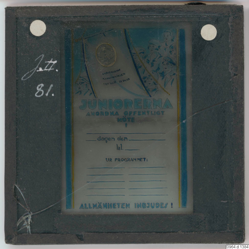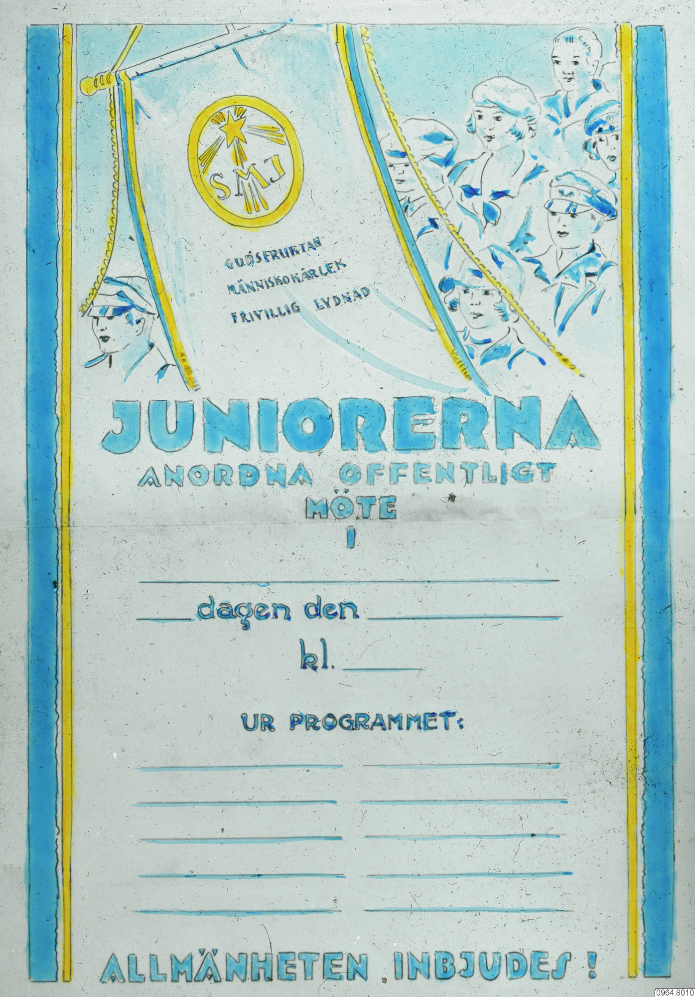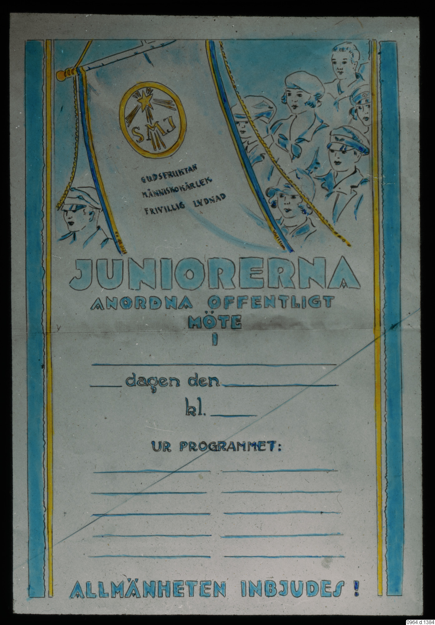 • Reprofoto av affisch för "Juniorerna anordna offentligt möte i ...". Program, Allmänheten inbudes!