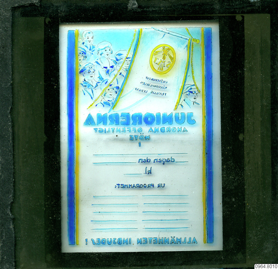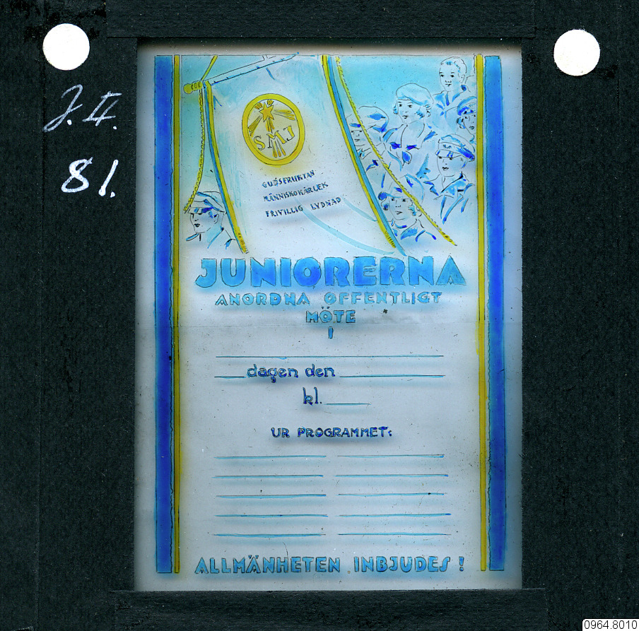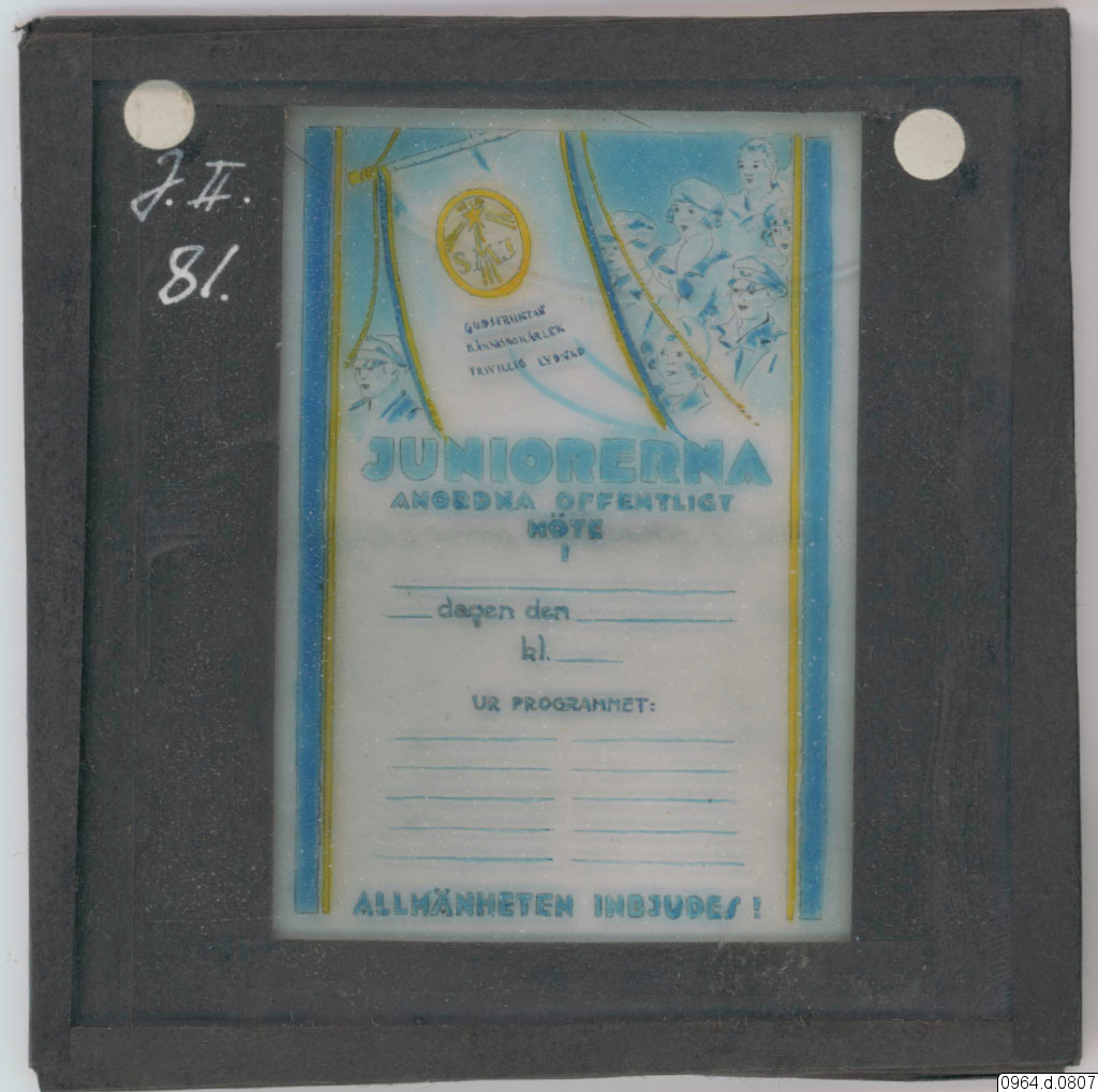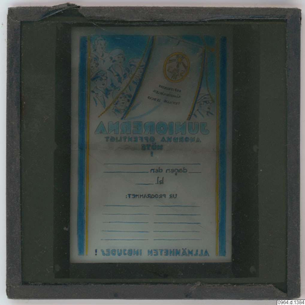 • Reprofoto av affisch för "Juniorerna anordna offentligt möte i ...". Program, Allmänheten inbudes!