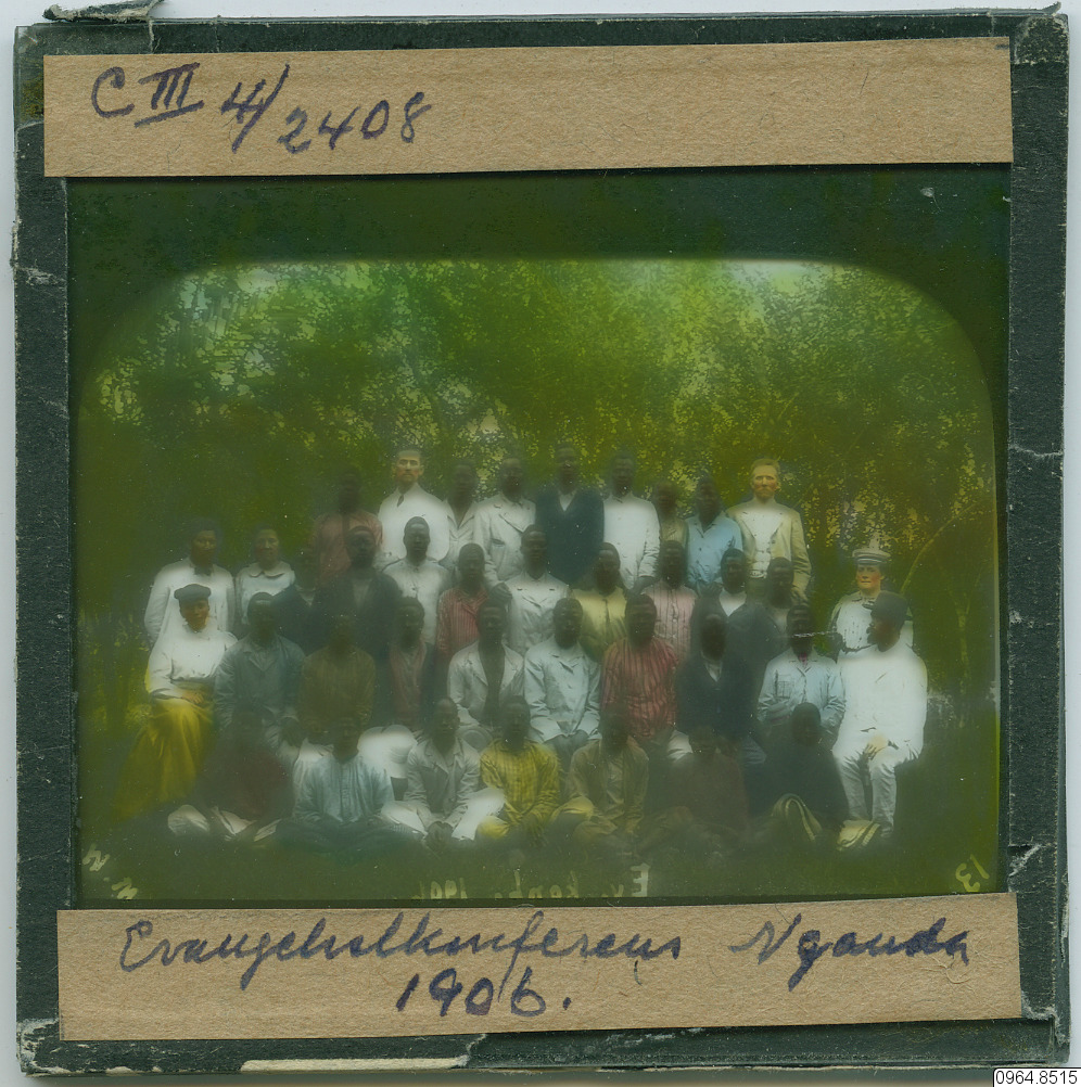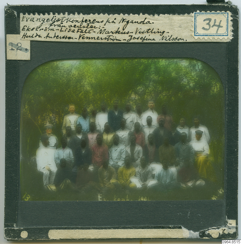 Evangelistkonferens, Nganda 1906. Fr.v. Ekström, Lisa Fält, Markus, Vestling, Hulda Maria Andersson, Vennerström, Josefina Nilsson.