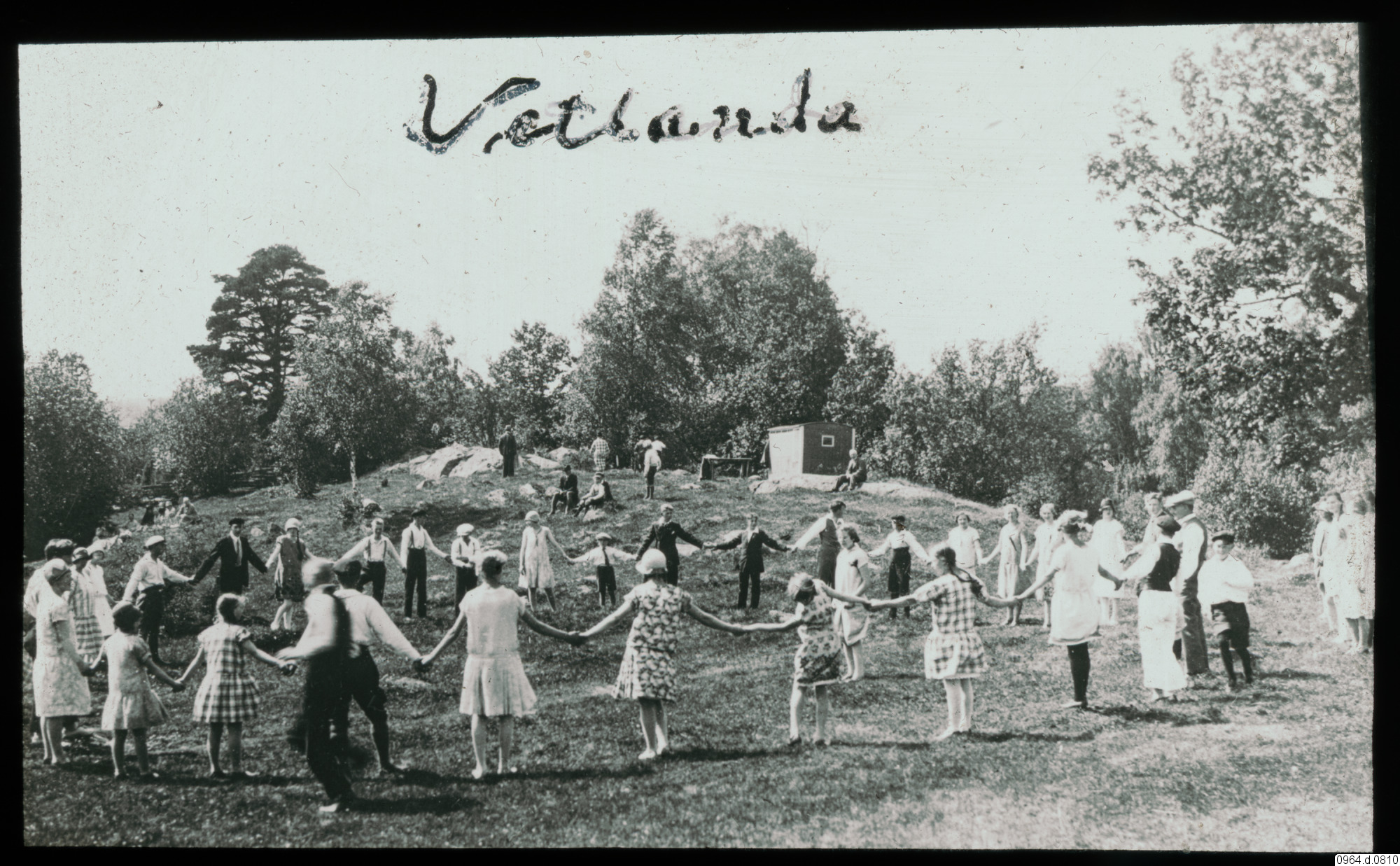 • Vetlanda juniorer på ringdans på äng.