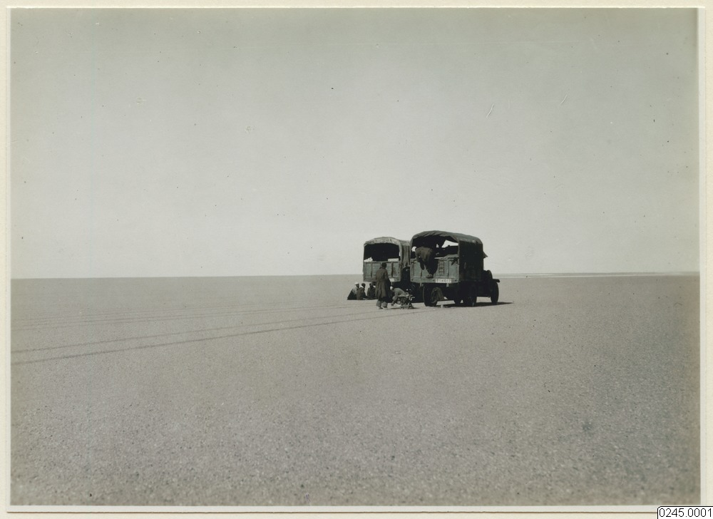 Ökenparti. Mellan Araneb och Aslám.Ant. av Mordini: Serir ebtre Unam (?) El Araneb et El Aslám.