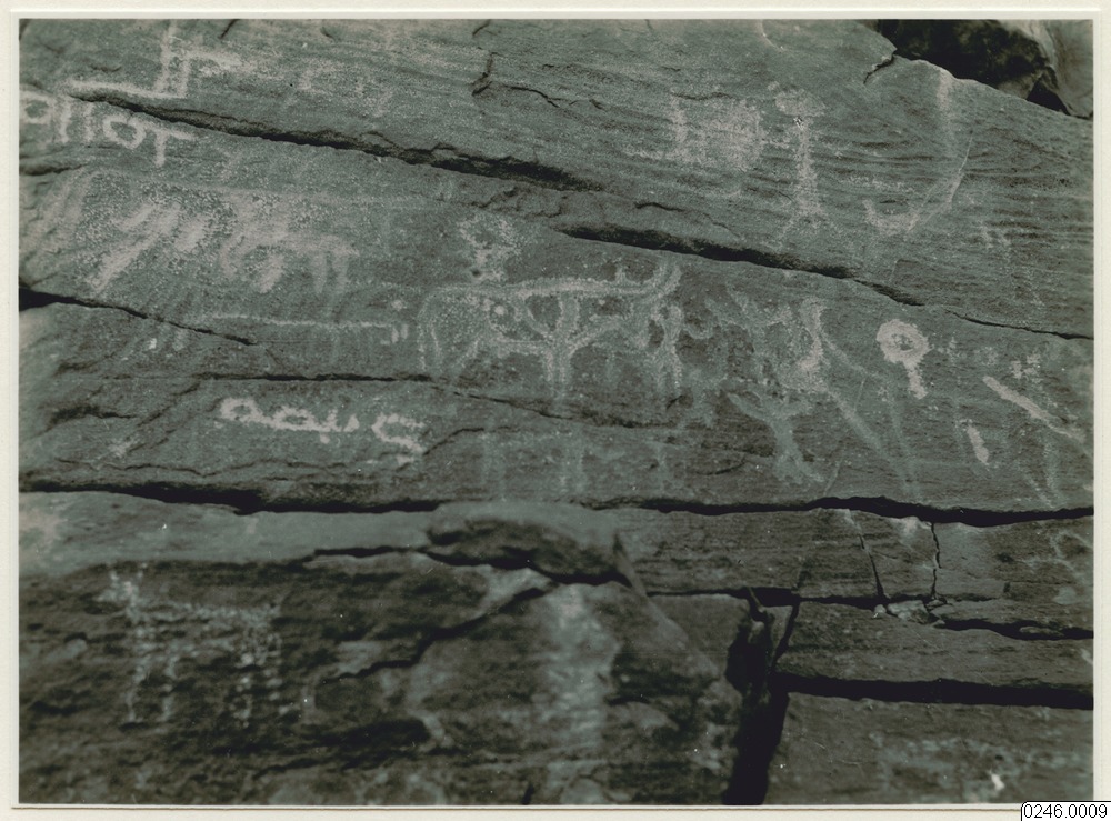 Hällristning. Fessan. Wadi Zigza. Ant. av Mordini: Uadi Zigza (60 km. N.W. de Brak).