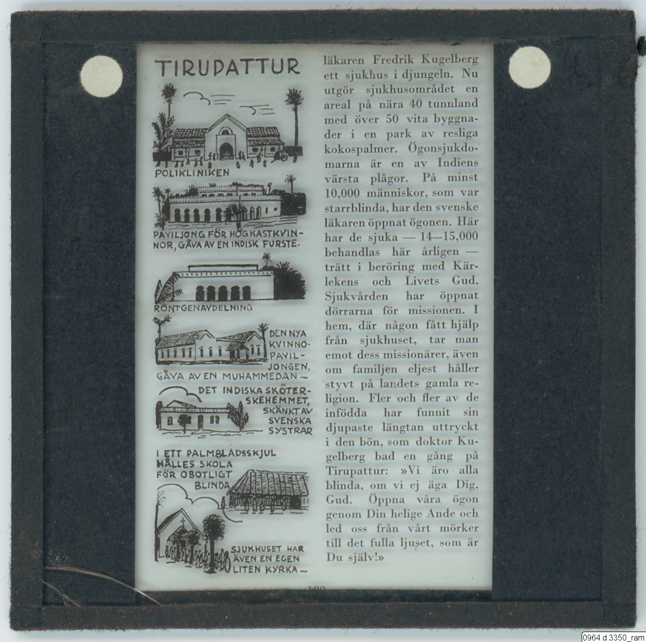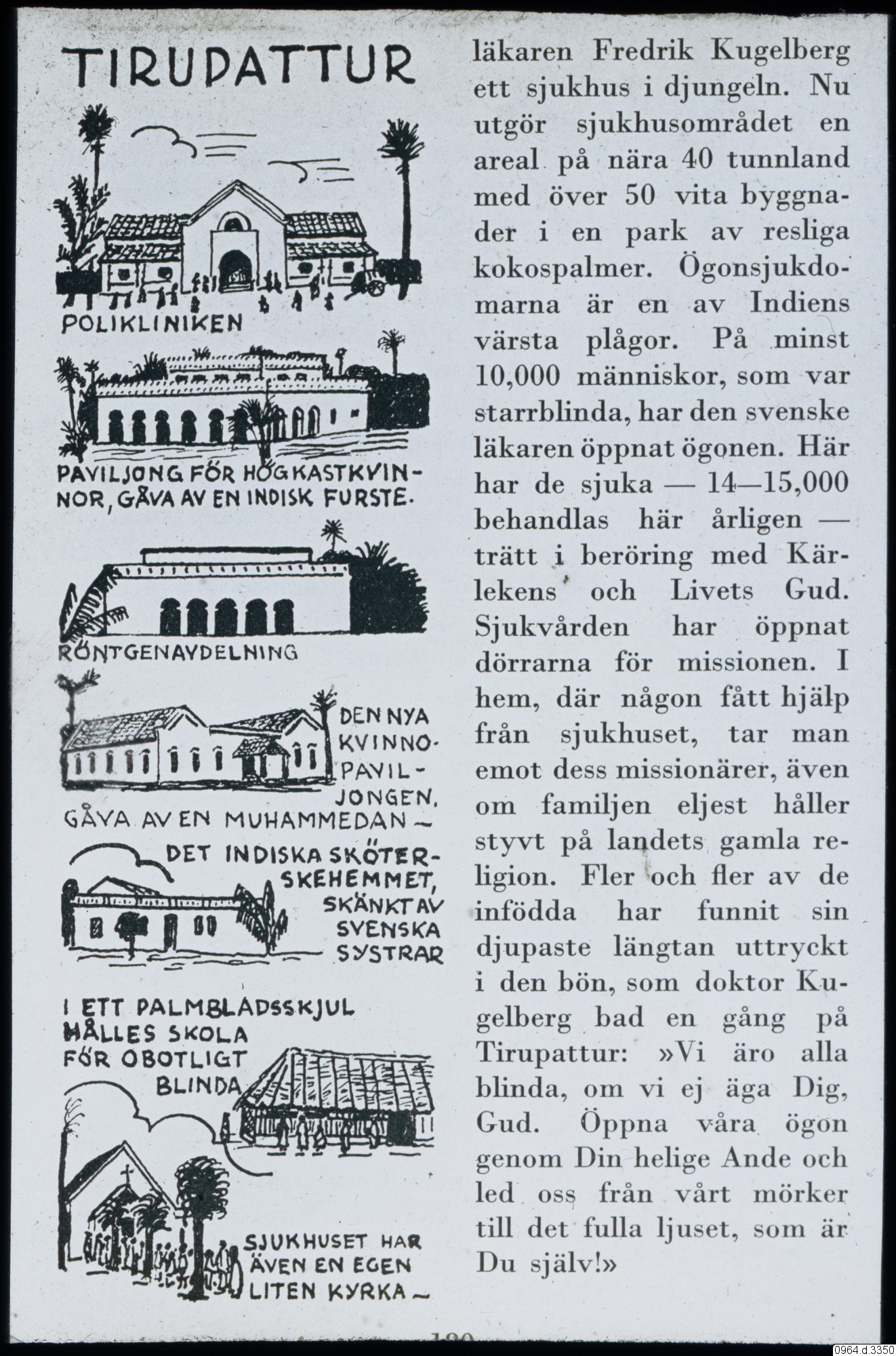 • Text och illustrationer, om svensk mission i Indien. Tirupattur.