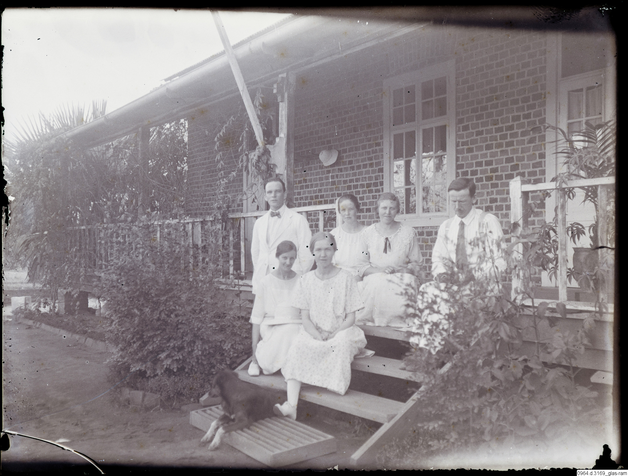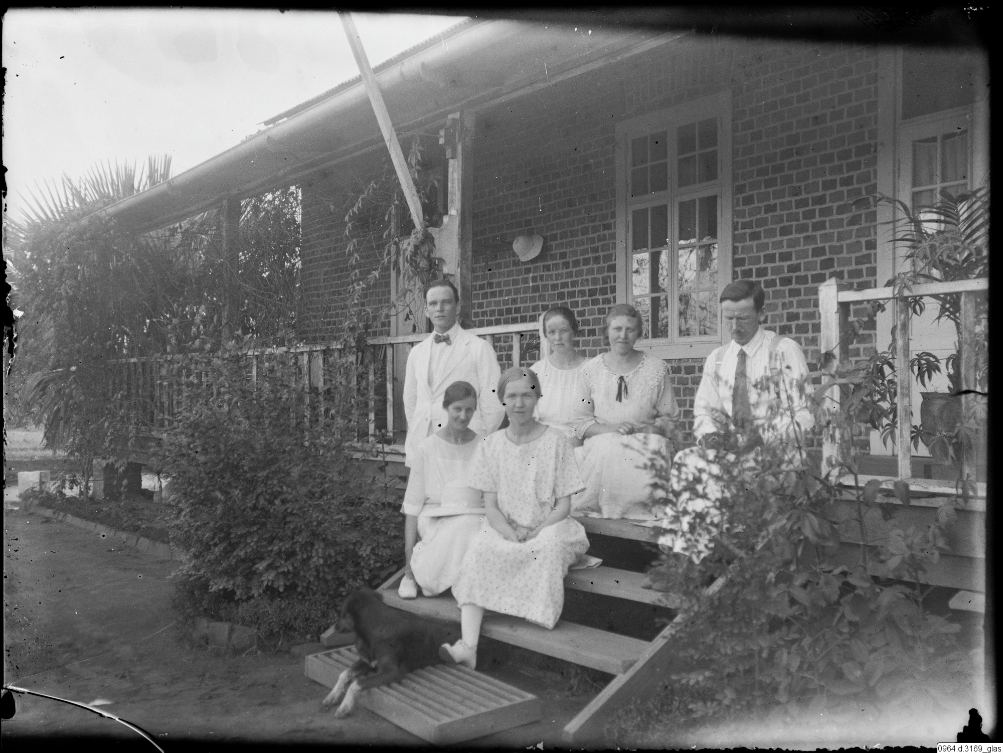 gruppfoto, trappa, veranda, byggnad, missionärer, missionsstation, hus, fotografi, photograph